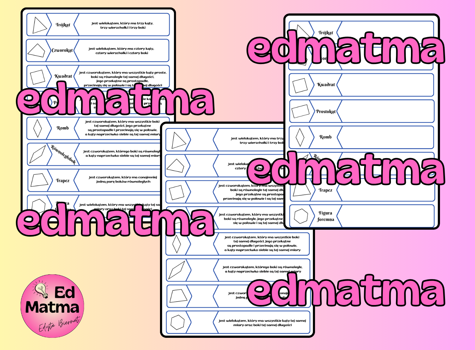 Wszechstronność: Idealny zarówno do wprowadzenia nowego tematu, do utrwalania wiedzy o klasyfikacji wielokątów i figur, jak i do przypomnienia pojęć z młodszych klas.