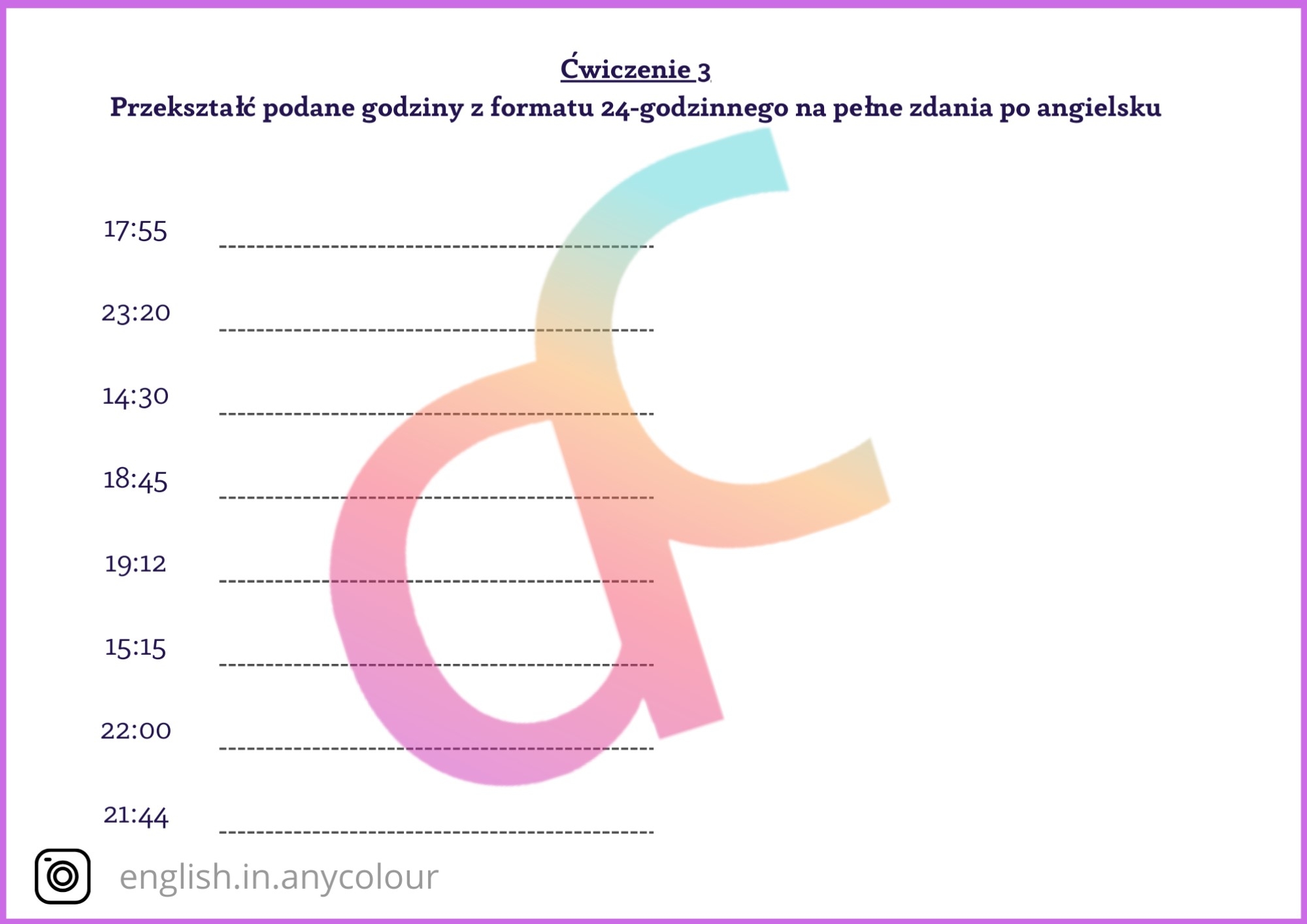 Kompletna lekcja z podawania czasu w języku angielskim.