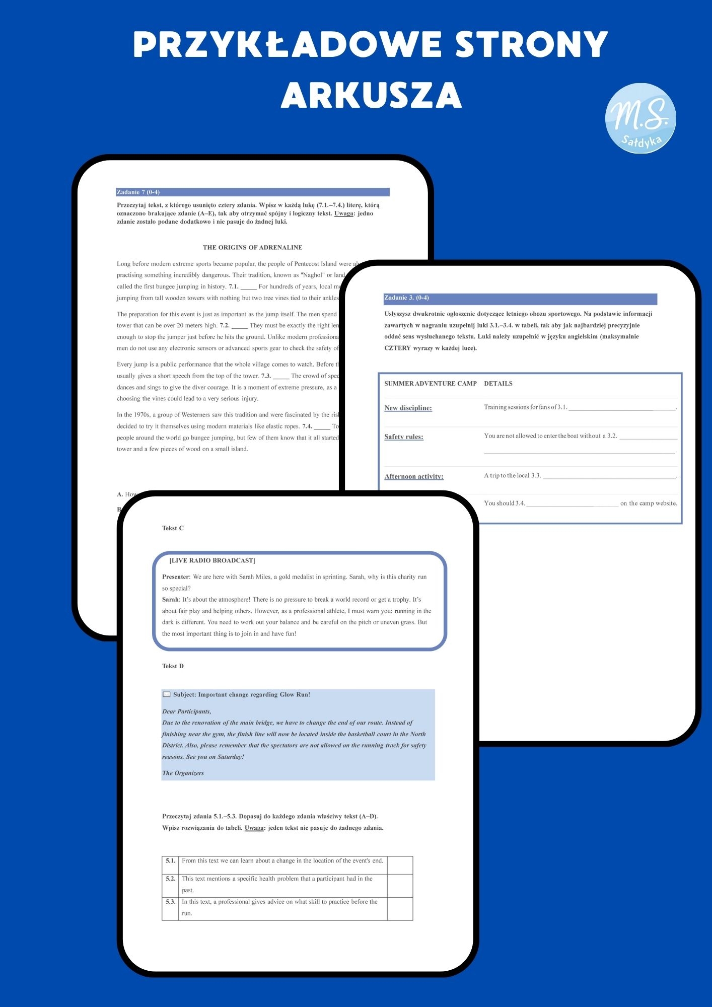 W przygotowanie arkusza włożyłam dużo pracy – wszystkie teksty zostały napisane lub starannie zaadaptowane tak, aby były naturalne, współczesne i zgodne z poziomem B1/B1+.