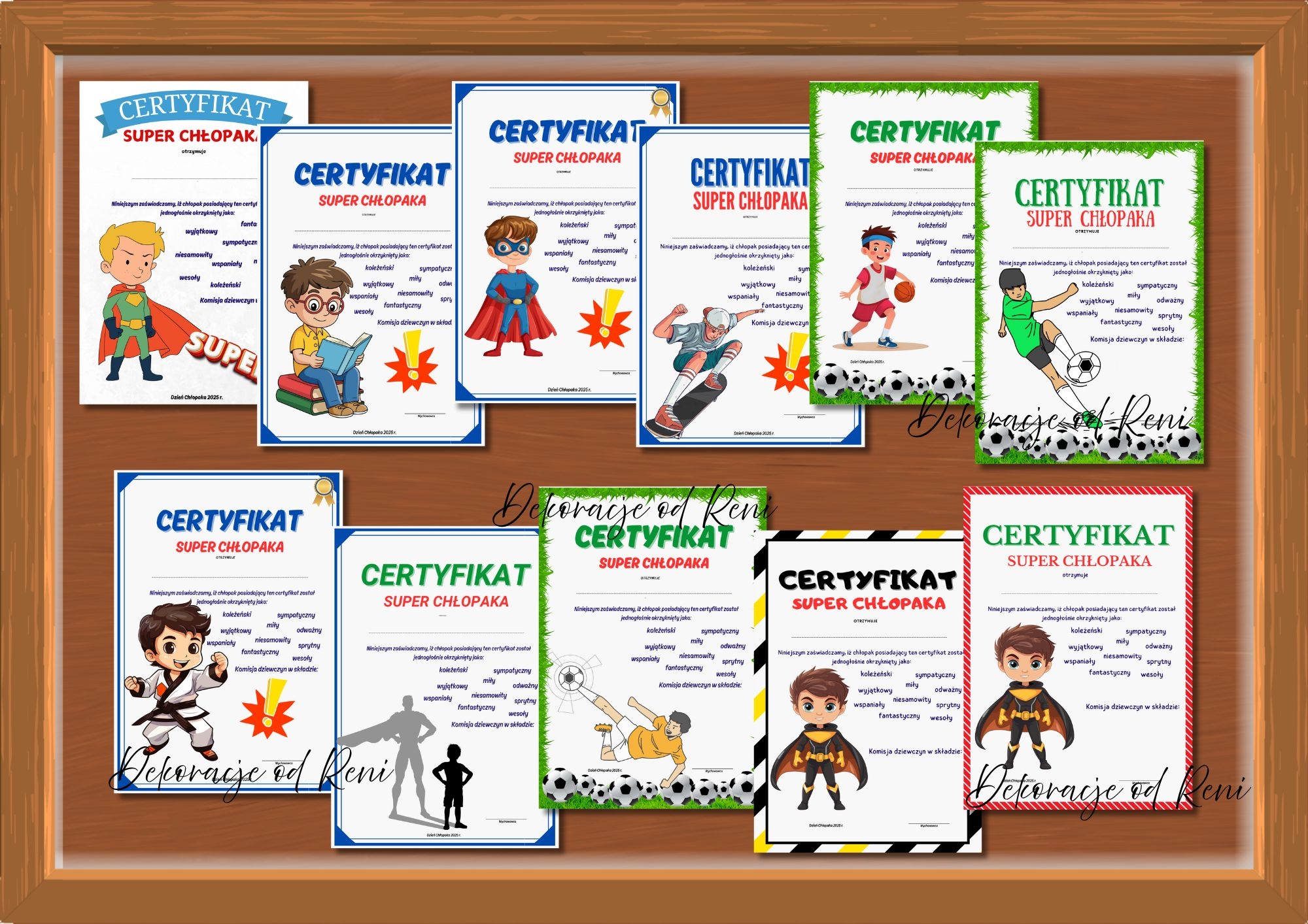 Zestaw 11 szablonów Certyfikatów Super Chłopaka A4+wersja A5