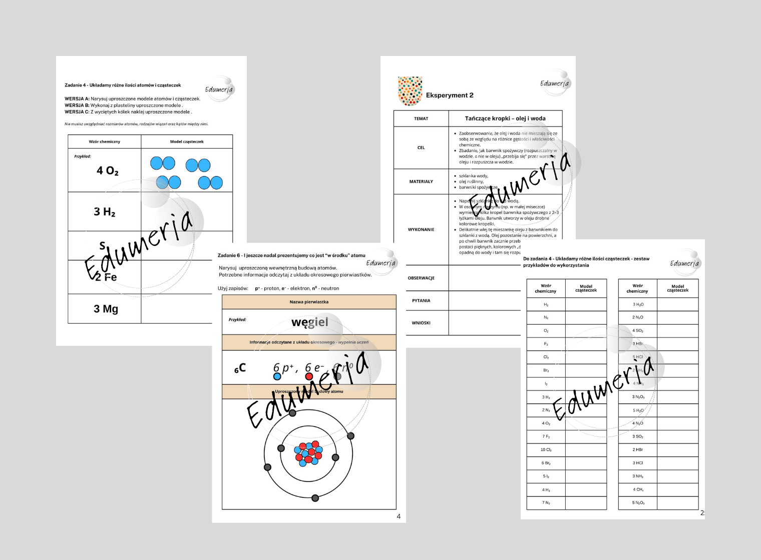 • 🎨 zadania z kropek, które zamieniają się w atomy i cząsteczki,