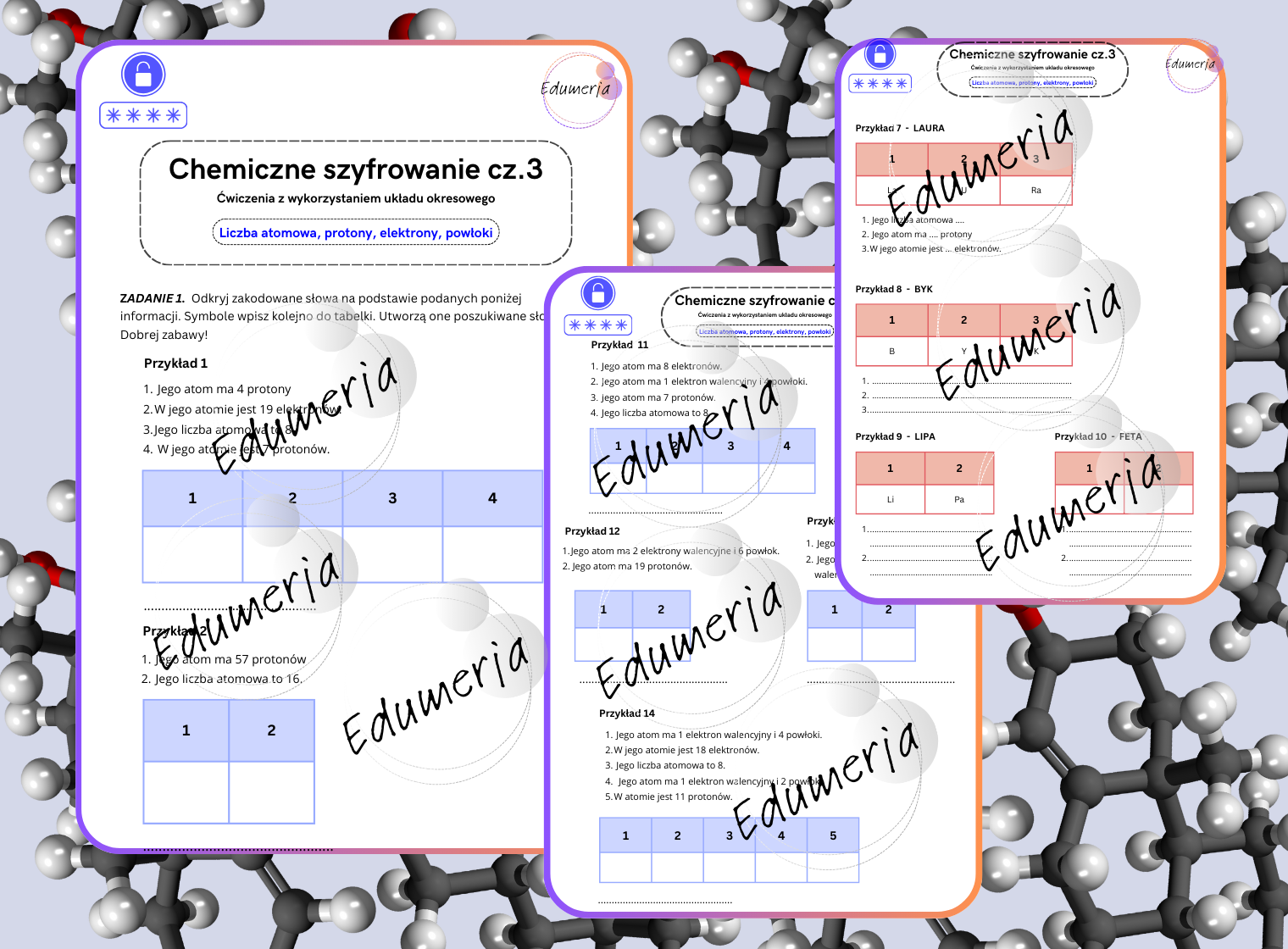 Chemiczne szyfrowanie część 3 to kontynuacja serii materiałów dydaktycznych, w której nauka chemii łączy się z elementami zabawy i logicznego myślenia.