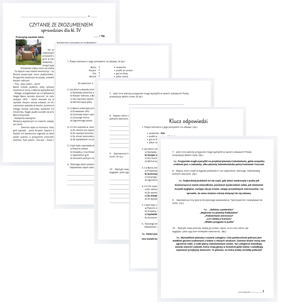 czytanie ze zrozumieniem - sprawdzian - klasa 4