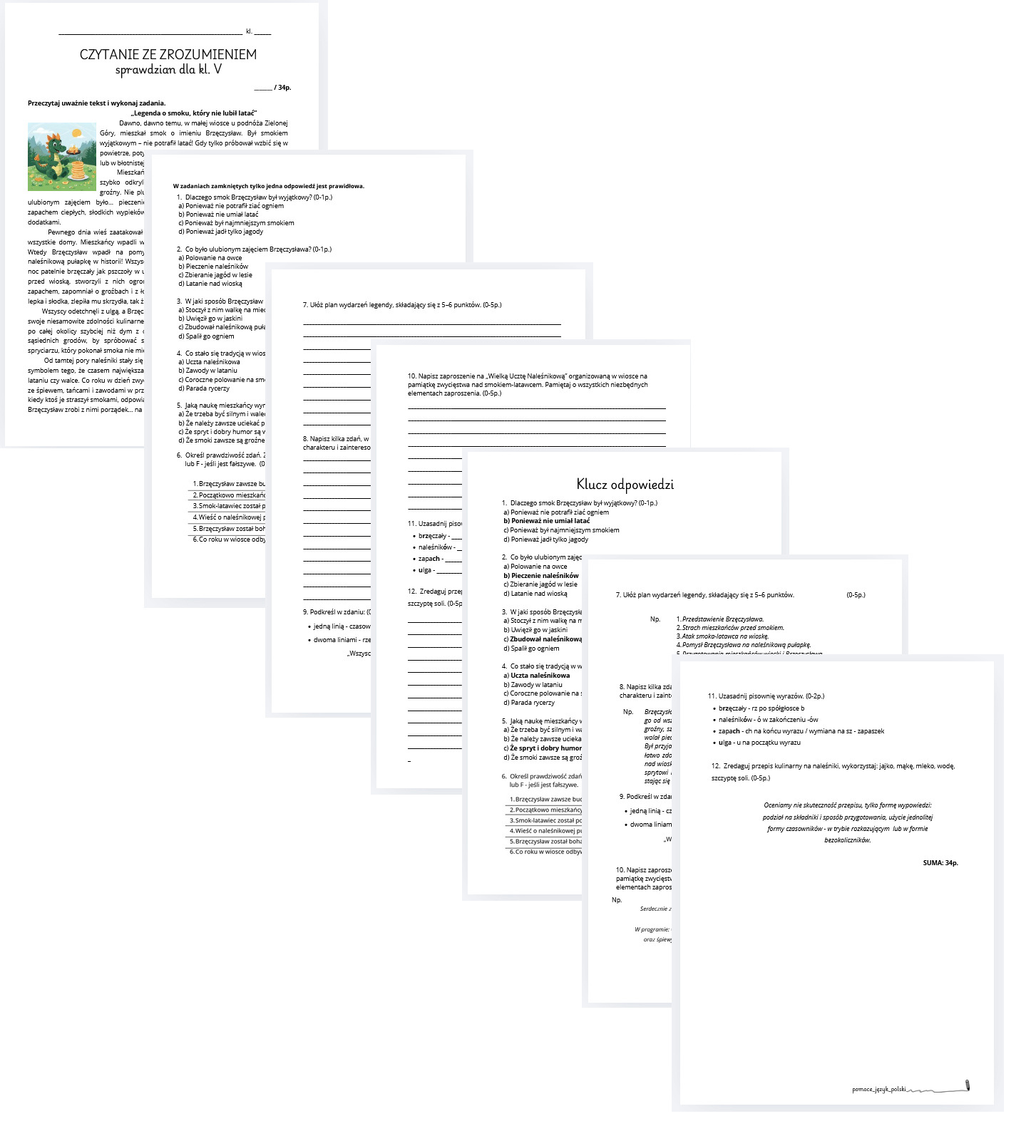 czytanie ze zrozumieniem - sprawdzian - klasa 5