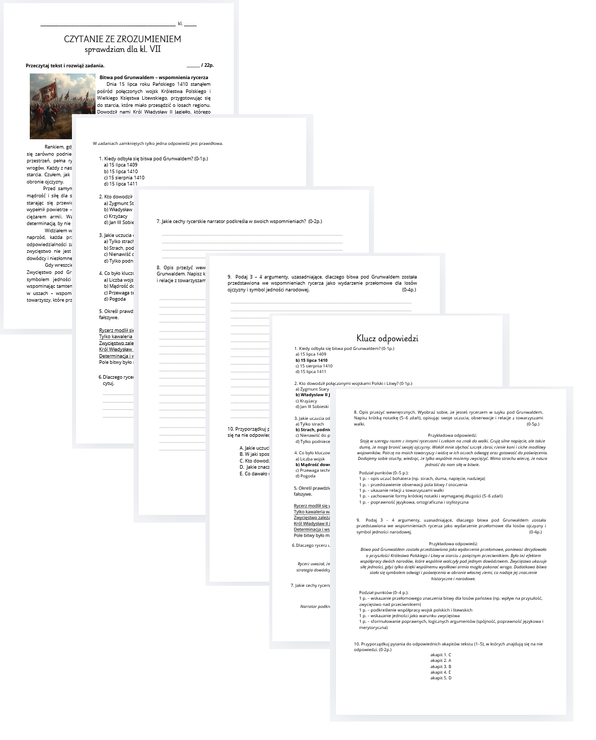 czytanie ze zrozumieniem - sprawdzian - klasa 7