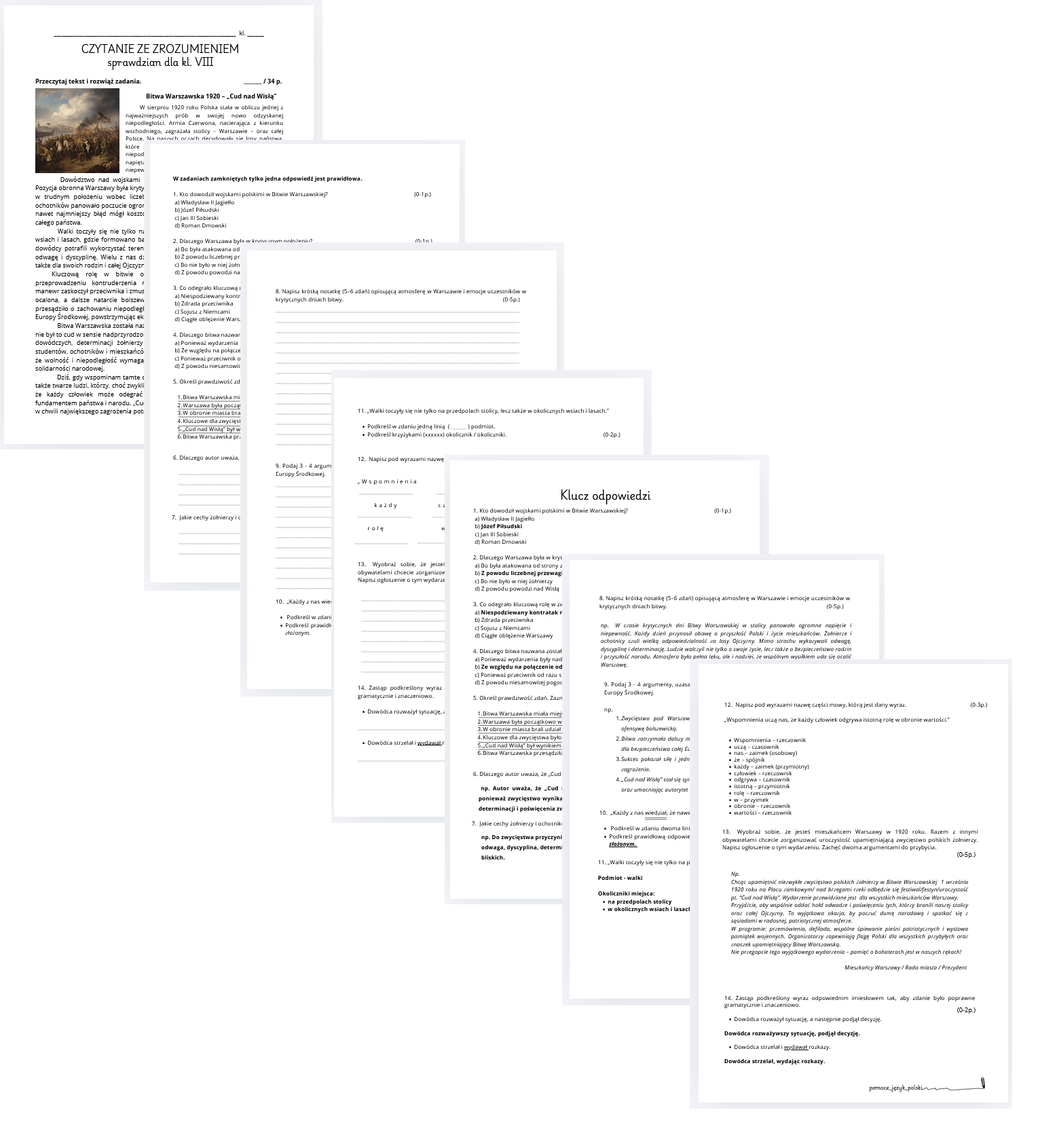 czytanie ze zrozumieniem - sprawdzian - klasa 8