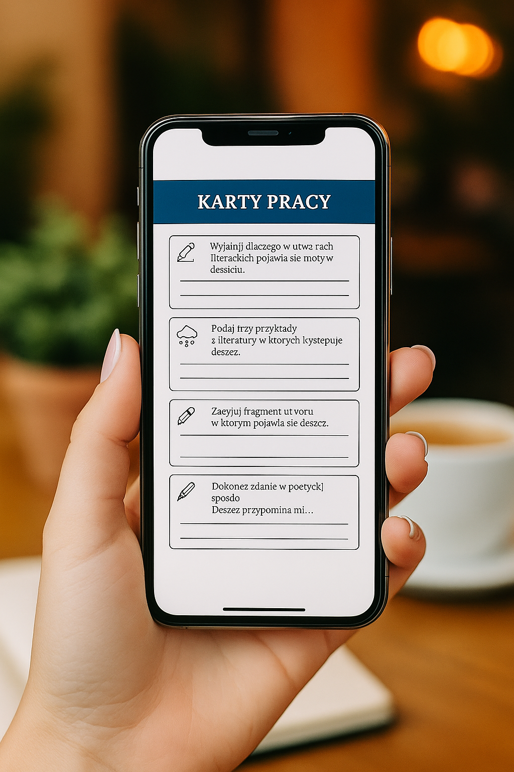 ✅ Uniwersalne zastosowanie – sprawdzi się na lekcji języka polskiego w klasach 7–8, ale także jako materiał powtórkowy i inspiracja do zajęć dodatkowych.