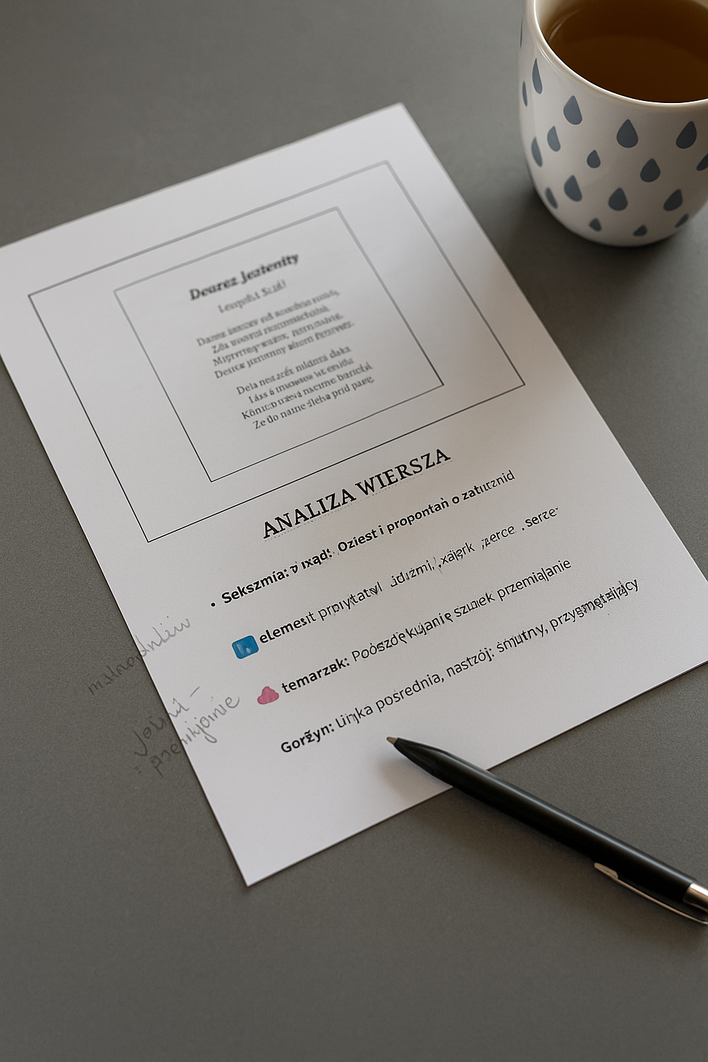 📘 Gotowy, profesjonalnie przygotowany scenariusz lekcji, który wprowadzi Twoich uczniów w fascynujący świat symboliki deszczu w poezji i prozie.