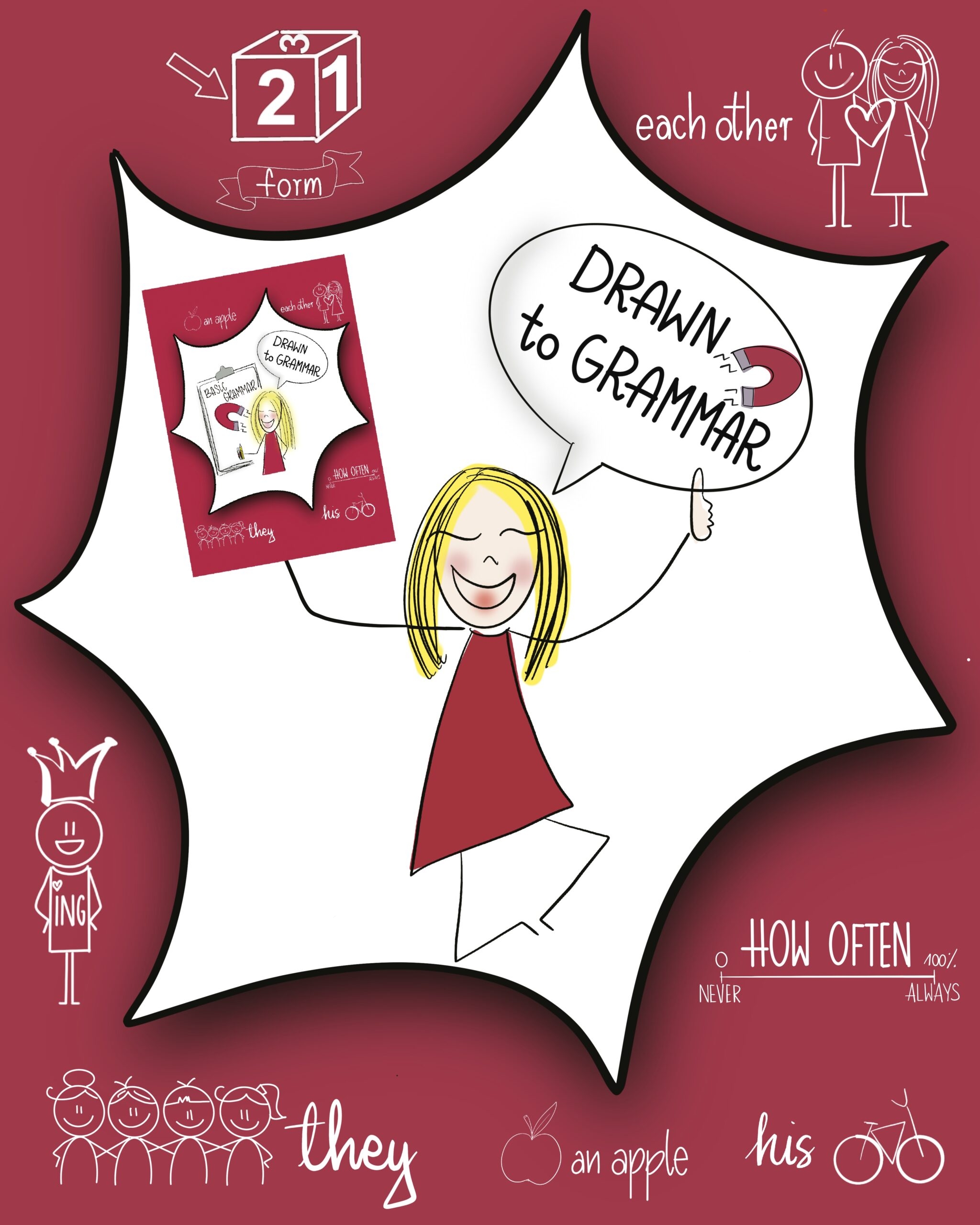 Niezależnie od tego, czy prowadzisz lekcję, czy uczysz się na własną rękę, „Drawn to Grammar” będzie Twoim niezastąpionym wsparciem w nauce gramatyki angielskiej.