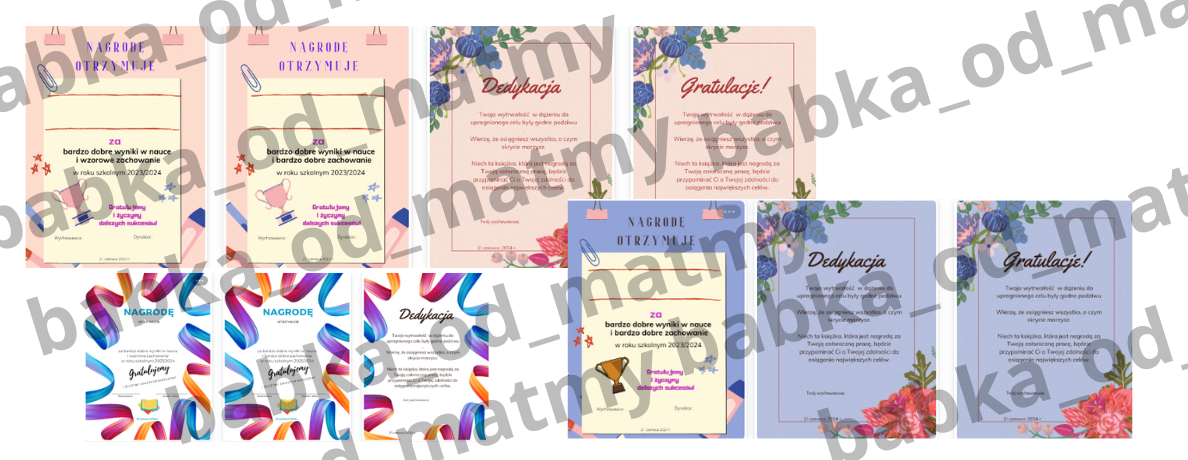 - wkładki do książek dla dziewcząt i chłopców (2 kolory)