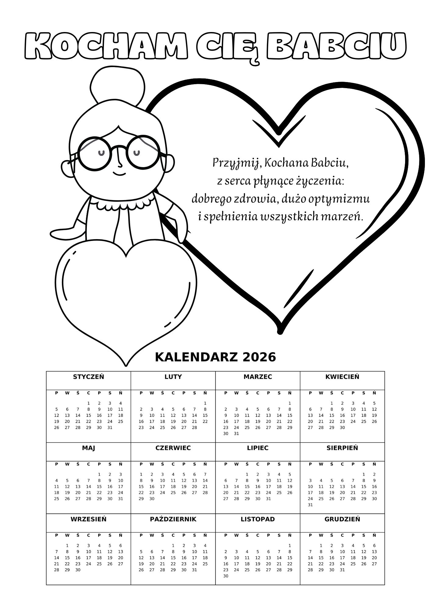 DZIEŃ BABCI I DZIADKA - KALENDARZ 2026 rok - różne wzory