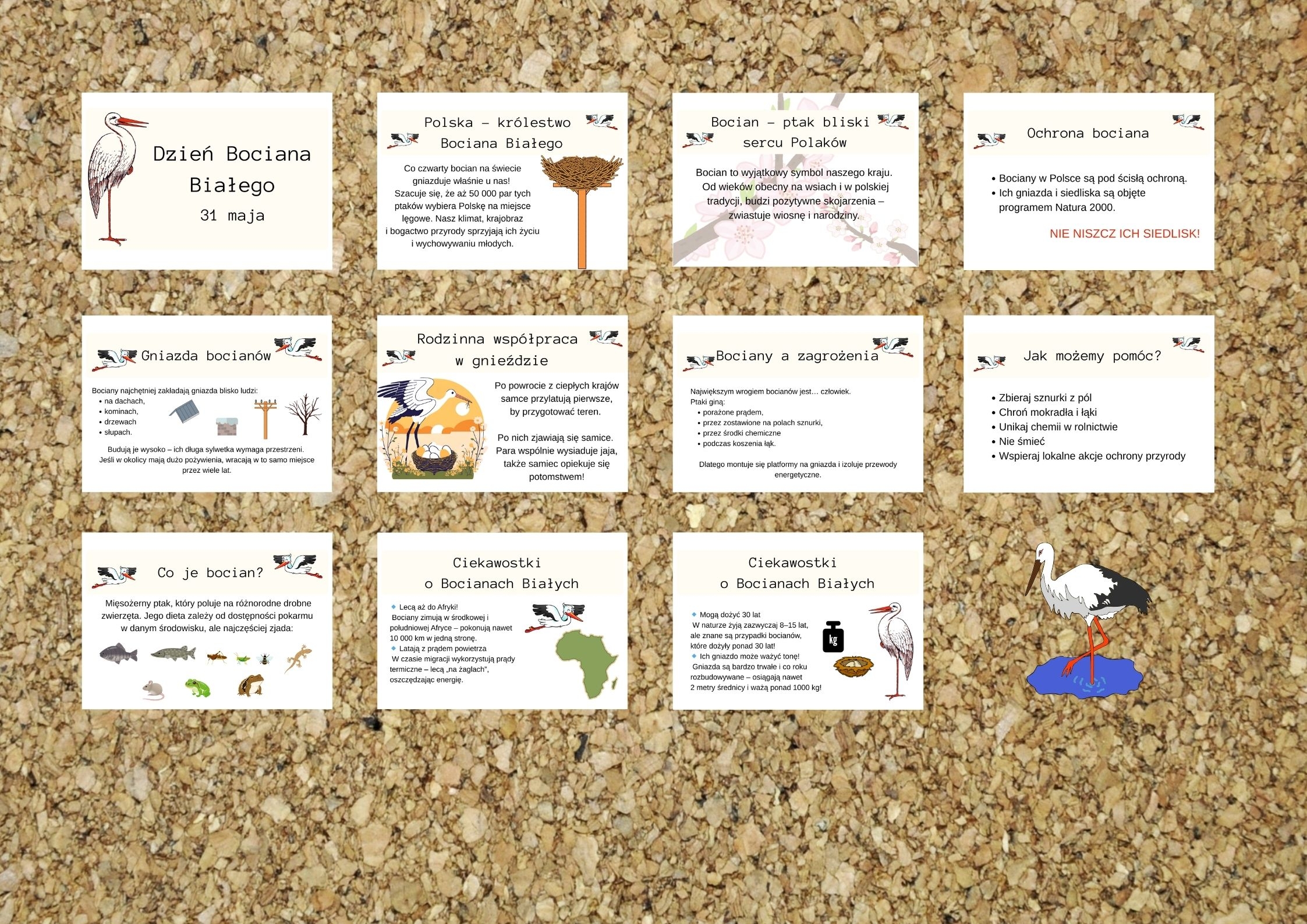– informacje o gniazdowaniu i zwyczajach bocianów