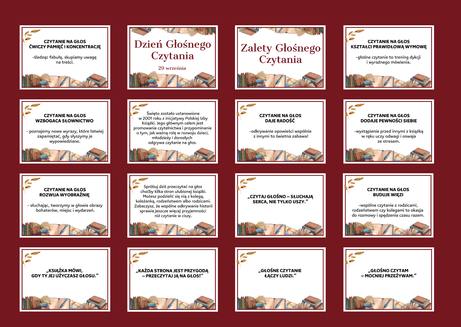 krótkie teksty wyjaśniające ideę Dnia Głośnego Czytania,