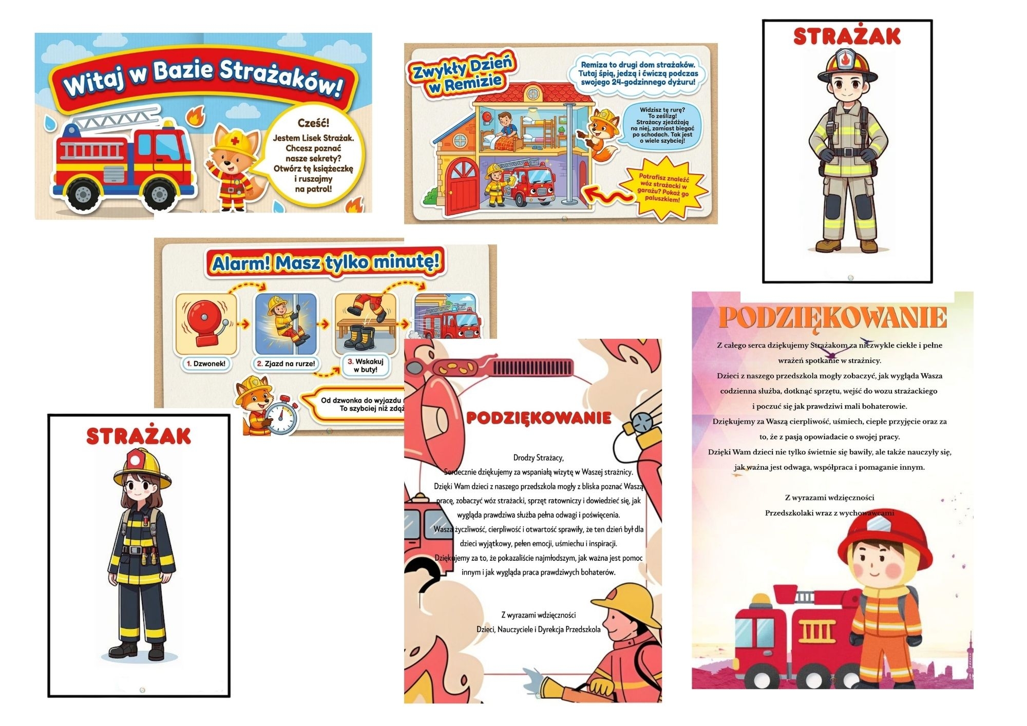 W środku znajdziesz: 🔸 książeczkę edukacyjną pełną ciekawostek, 🔸 karty pracy (labirynty, łączenie, wycinanki, zadania po śladzie, kolorowanki), 🔸 kreatywne aktywności (wyklejanki, miejsce na zdjęcie dziecka), 🔸 gotowe podziękowania dla strażaków po wizycie w remizie, 🔸 odznakę „Małego Pomocnika Straży Pożarnej”.