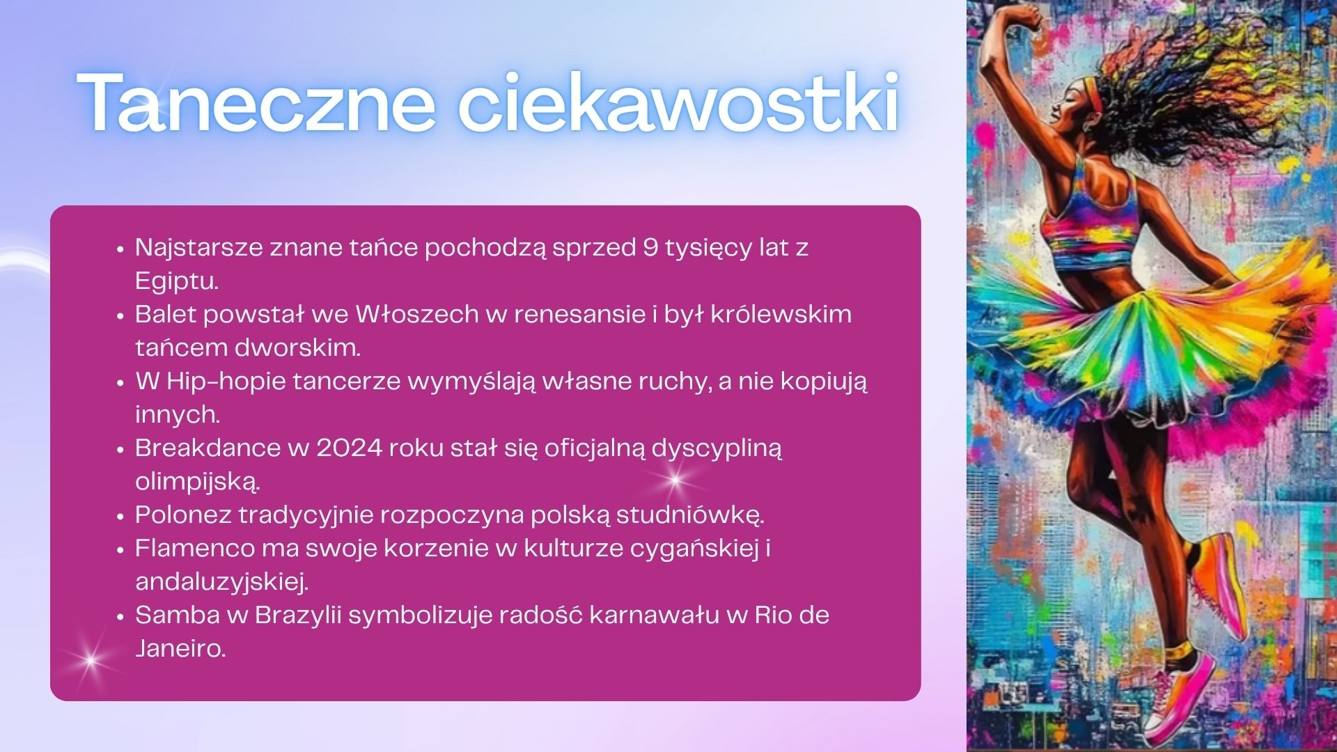 🎉 20 kolorowych, dopracowanych slajdów, które zabiorą dzieci w niezwykłą podróż po świecie tańca!