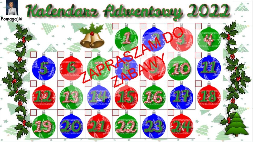 ☃Bombki w rozmiarze 6,68cm x 8,58cm - z zadaniami na każdy dzień grudnia. Przy wydruku dwustronnym wystarczy wyciąć bombki aby otrzymać zawieszki na choinkę.