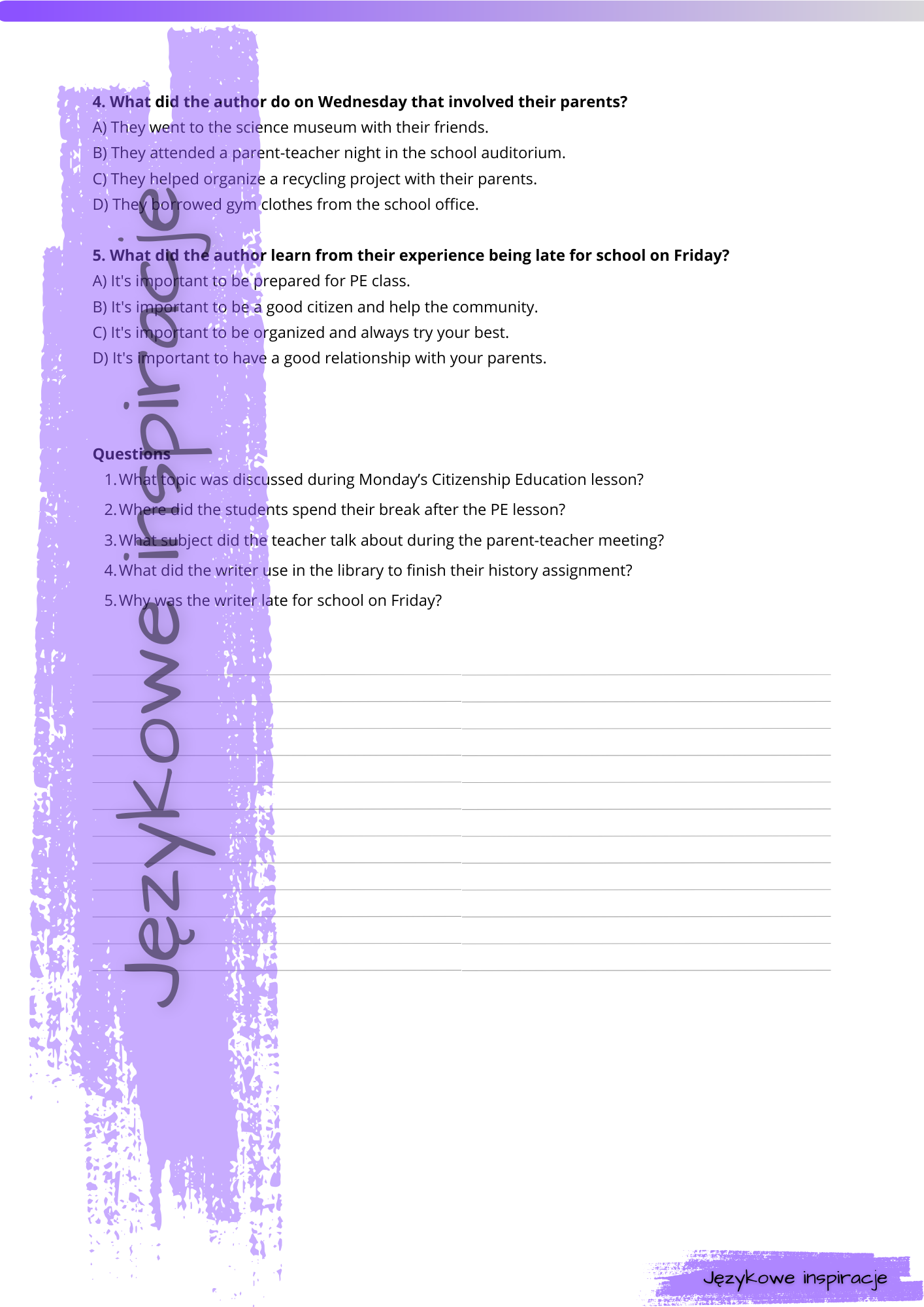 Pliki audio zostały stworzone, jako dodatek do pliku z czytankami. Możecie użyć tych zadań, jako ćwiczeń na zrozumienie tekstu lub jako typowy listening.