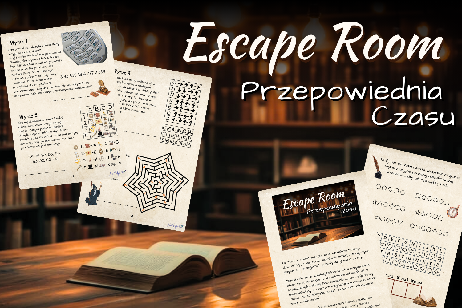 Escape Room podzielony jest na etapy pełne łamigłówek i szyfrów, które uczniowie muszą rozwiązać, by odczytać zakodowaną przepowiednię. Każda poprawna odpowiedź przybliża ich do odkrycia tajemniczego kodu i uratowania linii czasu. Zadania rozwijają logiczne myślenie, spryt i współpracę.