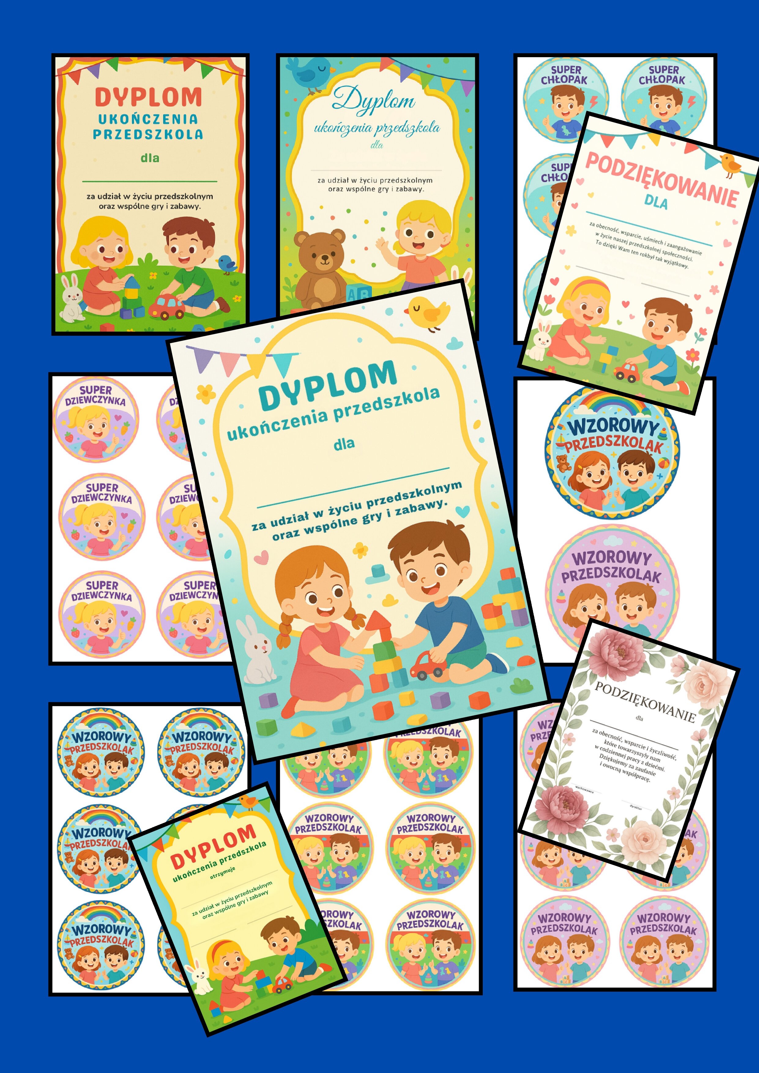 Zestaw 16 stron materiałów - idealny na zakończenie roku przedszkolnego: