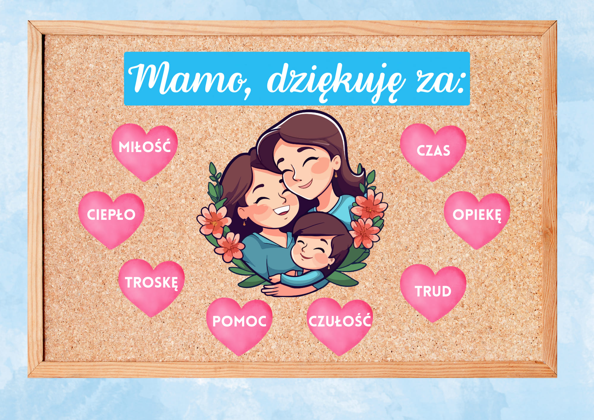 🩷 Napis na niebieskim tle ,,Mamo, dziękuję za:..."