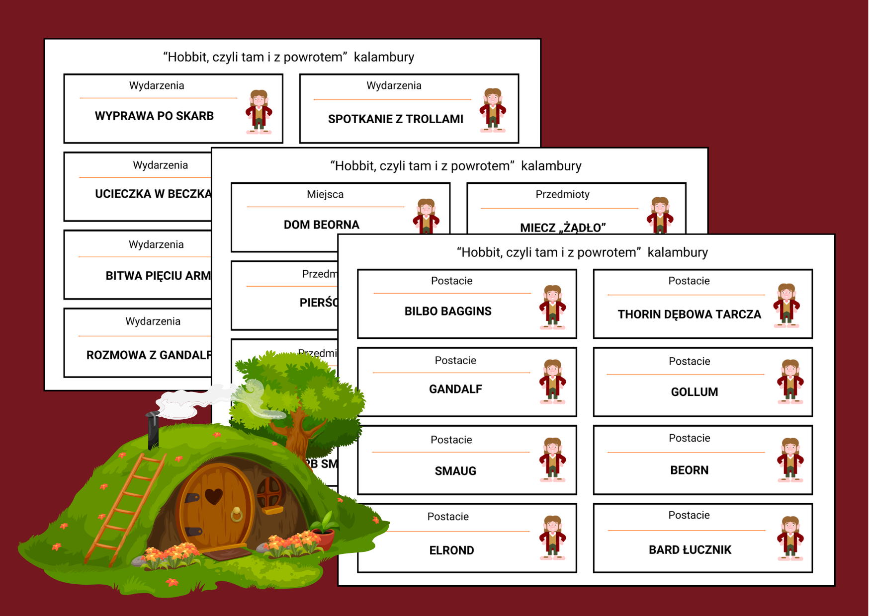 Zestaw „Kalambury – Hobbit, czyli tam i z powrotem” to świetna zabawa dla uczniów, fanów Tolkiena i miłośników literatury fantasy.