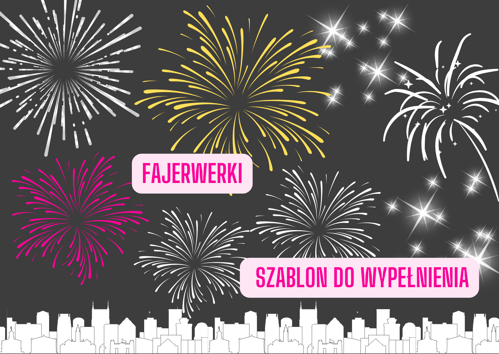 Szablon do wypełnienia przez dzieci - na karcie pracy fajerwerki są koloru białego.