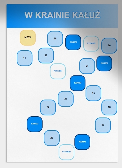 Stajesz na polu „kałuża” lub „chmurka”? Odpowiadasz na pytanie z karty!
