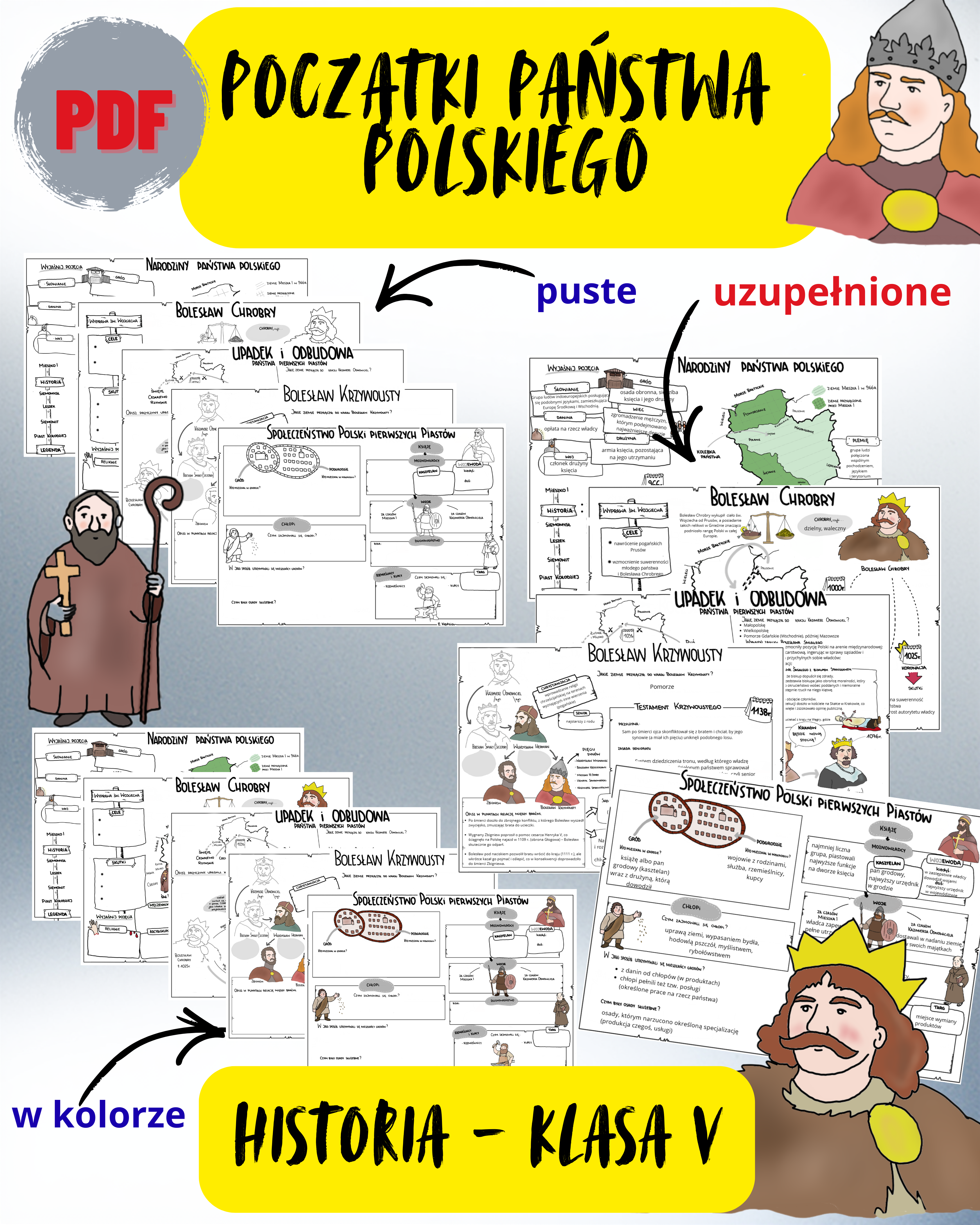 - Upadem i odbudowa państwa (Mieszko II, Bezprym, Kazimierz Odnowiciel, Bolesław Śmiały)