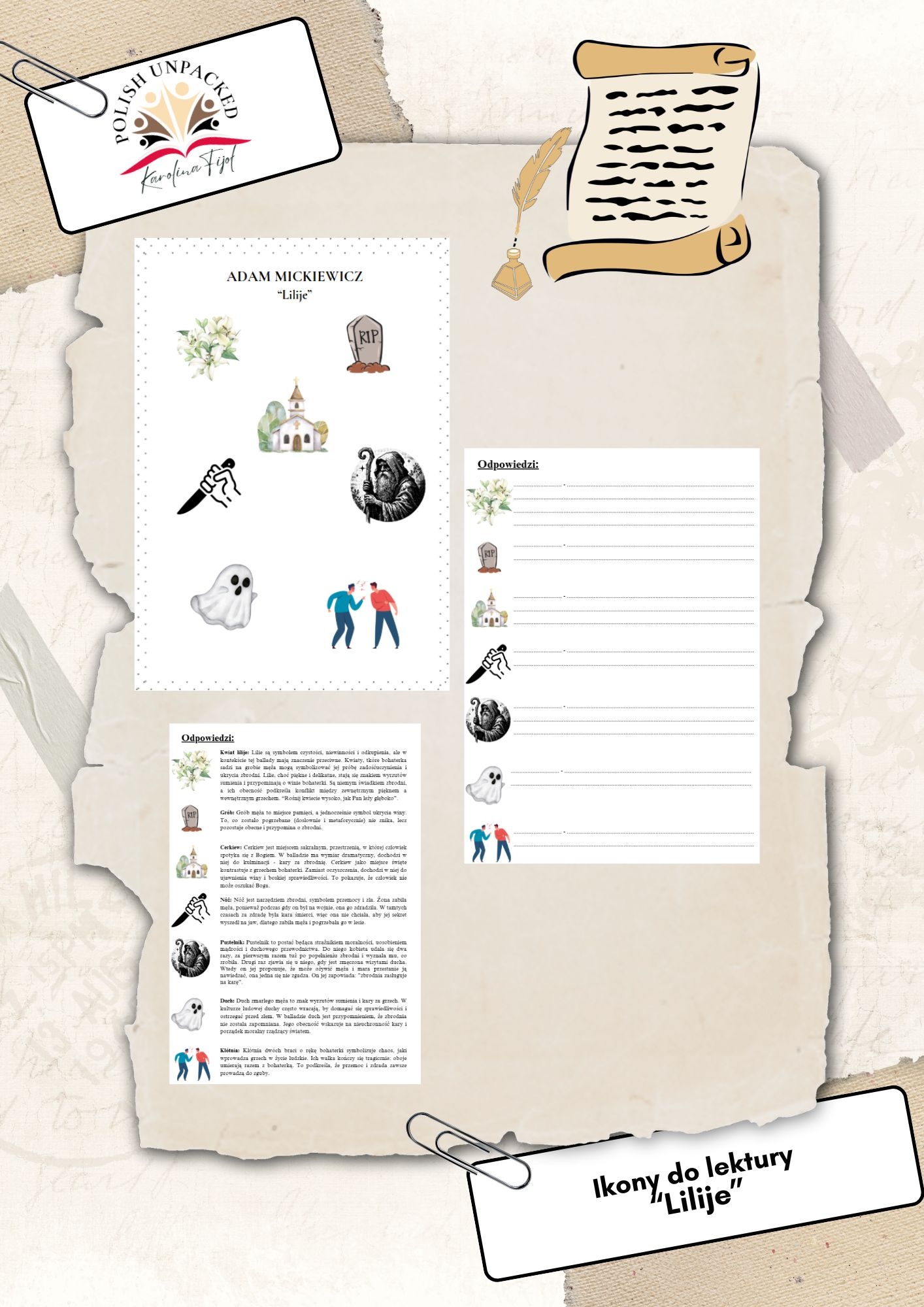 Ikony (obrazki, symbole) + odpowiedzi "Lilije" Adam Mickiewicz