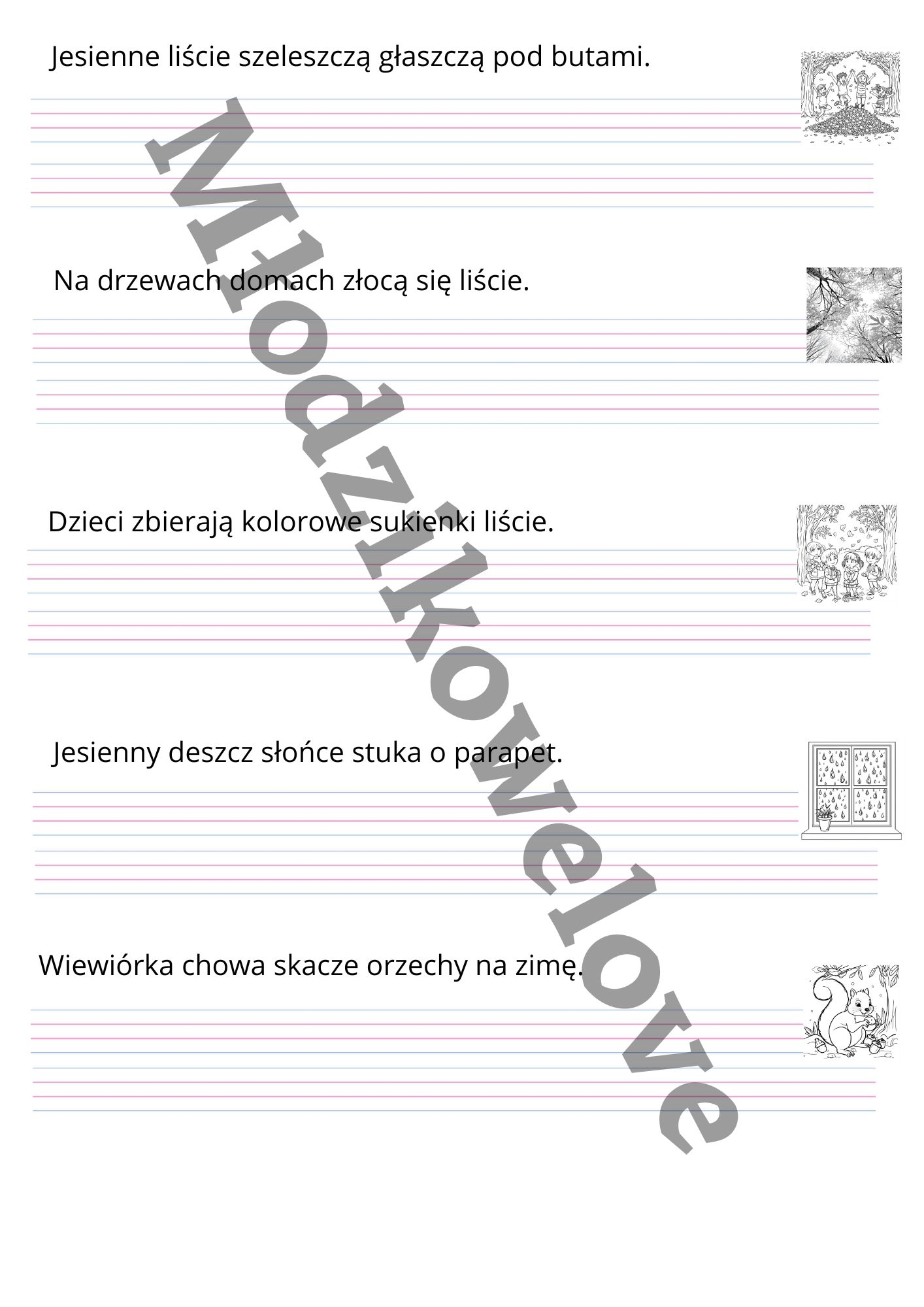 Materiał zawiera po 10 zdań na 4 pory roku :)