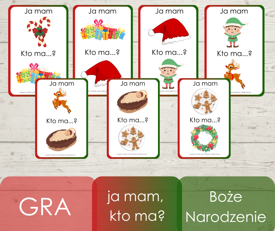 Szczegóły: - zestaw zawiera 24 kart do grania - zestaw składa się z 6 stron w formacie A4 do wydruku - na jednej A4 mieszczą się 4 karty - choinki
