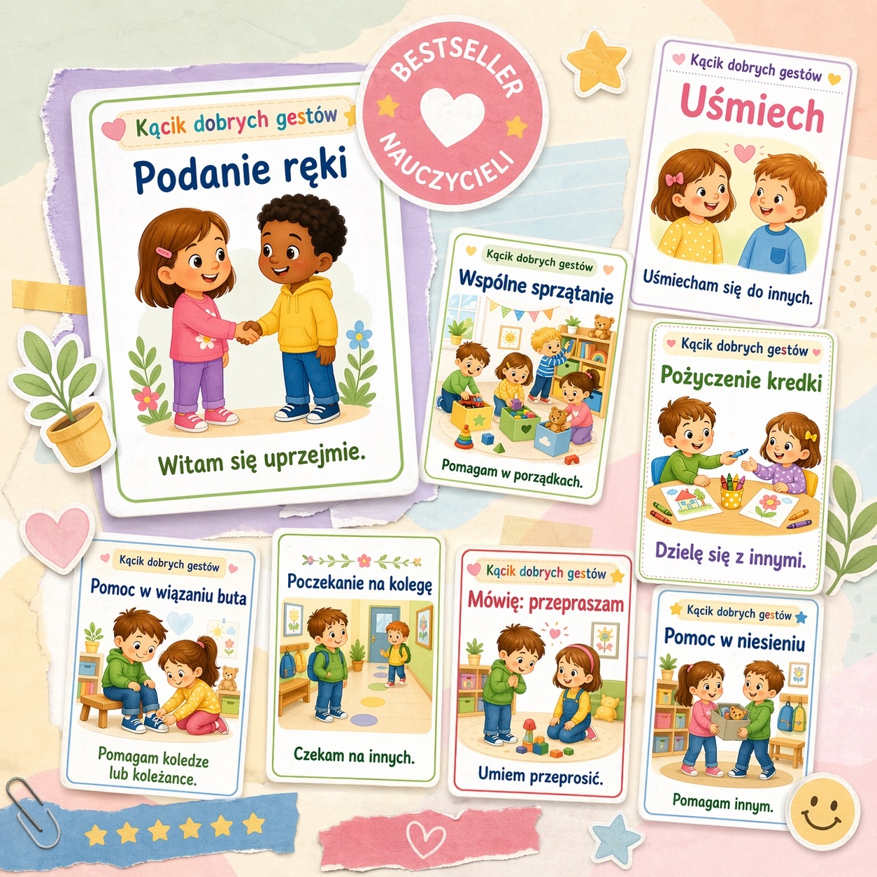 #KącikDobrychGestów #Przedszkole #Zerówka #PomoceDydaktyczne #DekoracjeDoSali #EdukacjaPrzedszkolna #DobreManiery #Empatia #Życzliwość #RelacjeRówieśnicze #WychowaniePrzedszkolne #NauczycielPrzedszkola #MateriałyDlaNauczycieli #EdukacjaEmocjonalna #DobryGest