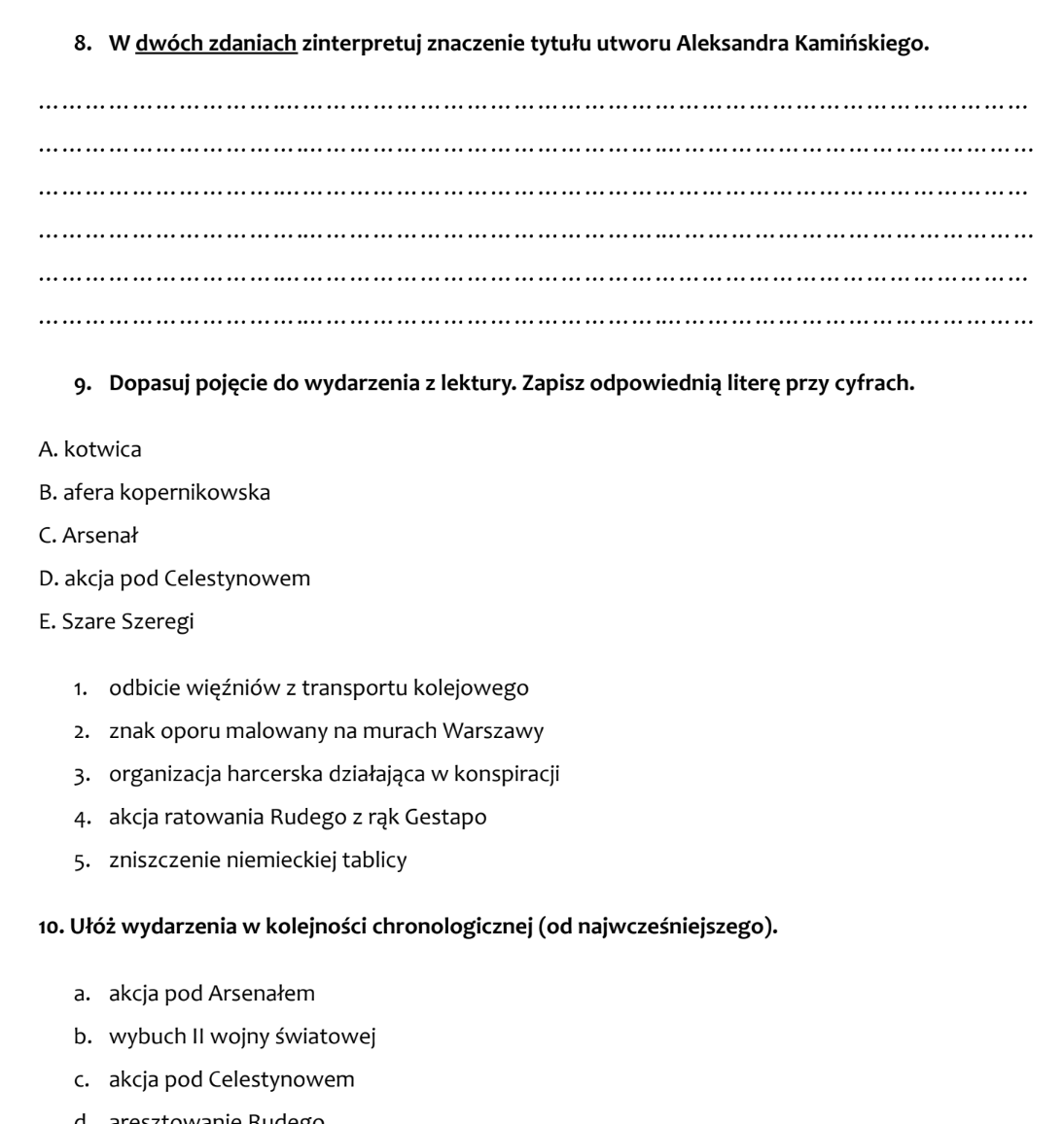 Gotowy, przemyślany sprawdzian po omówieniu „Kamieni na szaniec”, który sprawdzi nie tylko znajomość treści, ale też umiejętność argumentowania i myślenia uczniów?