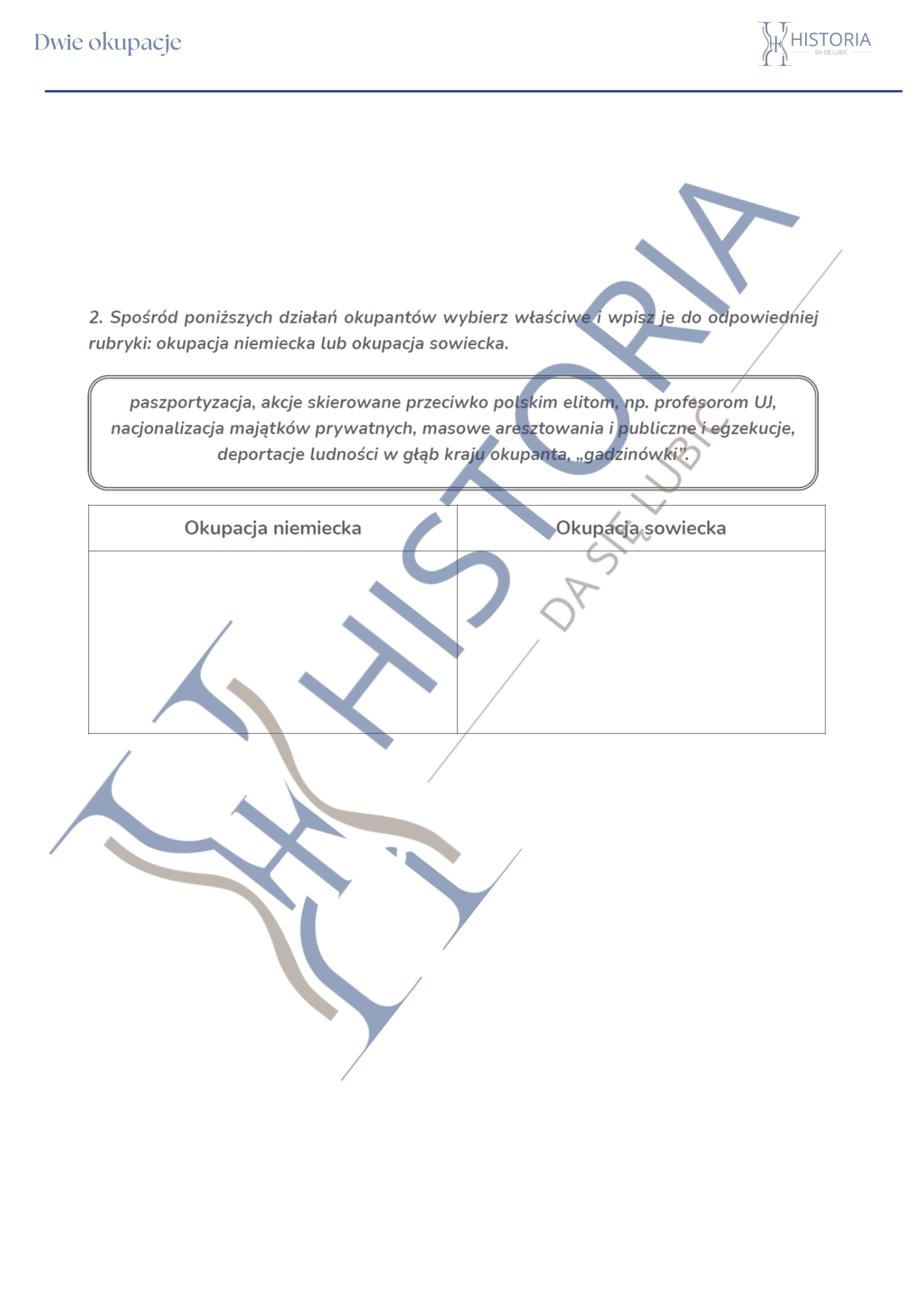 Karta pracy Dwie okupacje pomoże Ci wprowadzić ten trudny temat w sposób uporządkowany i angażujący.
