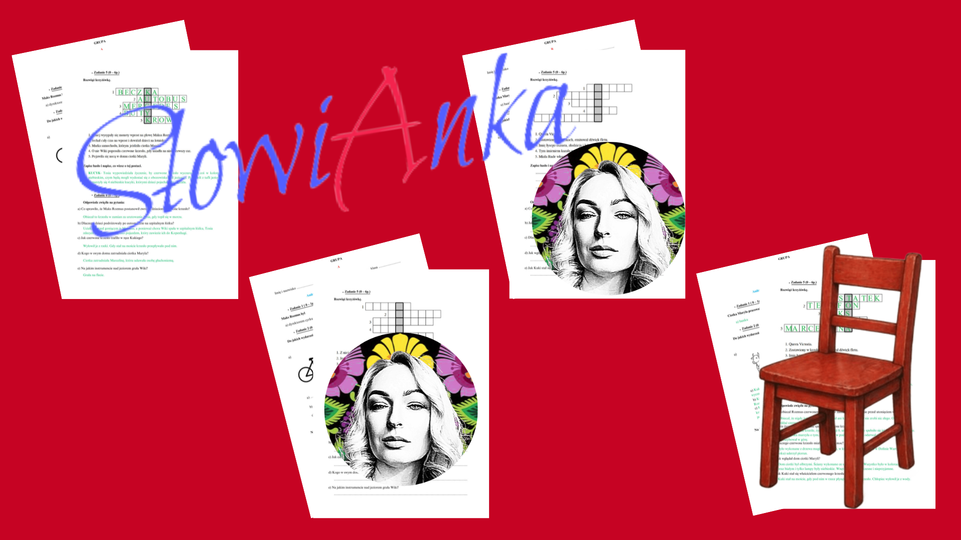 - krzyżówka wraz z miejscem na wykazanie się wiedzą na temat hasła krzyżówki;
