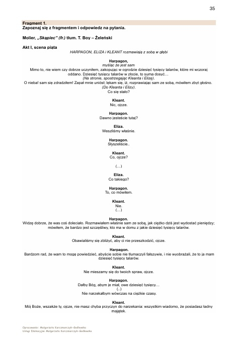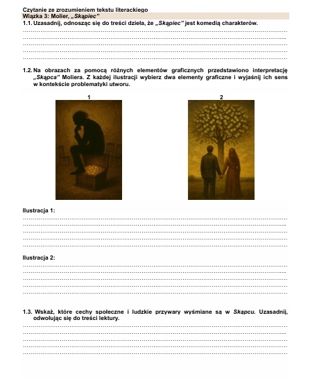 Zestaw do krytycznego (czytam i rozumiem) czytania lektur. W każdym secie: fragment lektury + zadania różnego typu do tekstu: prawda/fałsz, abcd, zadania otwarte, analiza cytatów. Do każdej lektury: 4 teksty + 5-6 zadań.