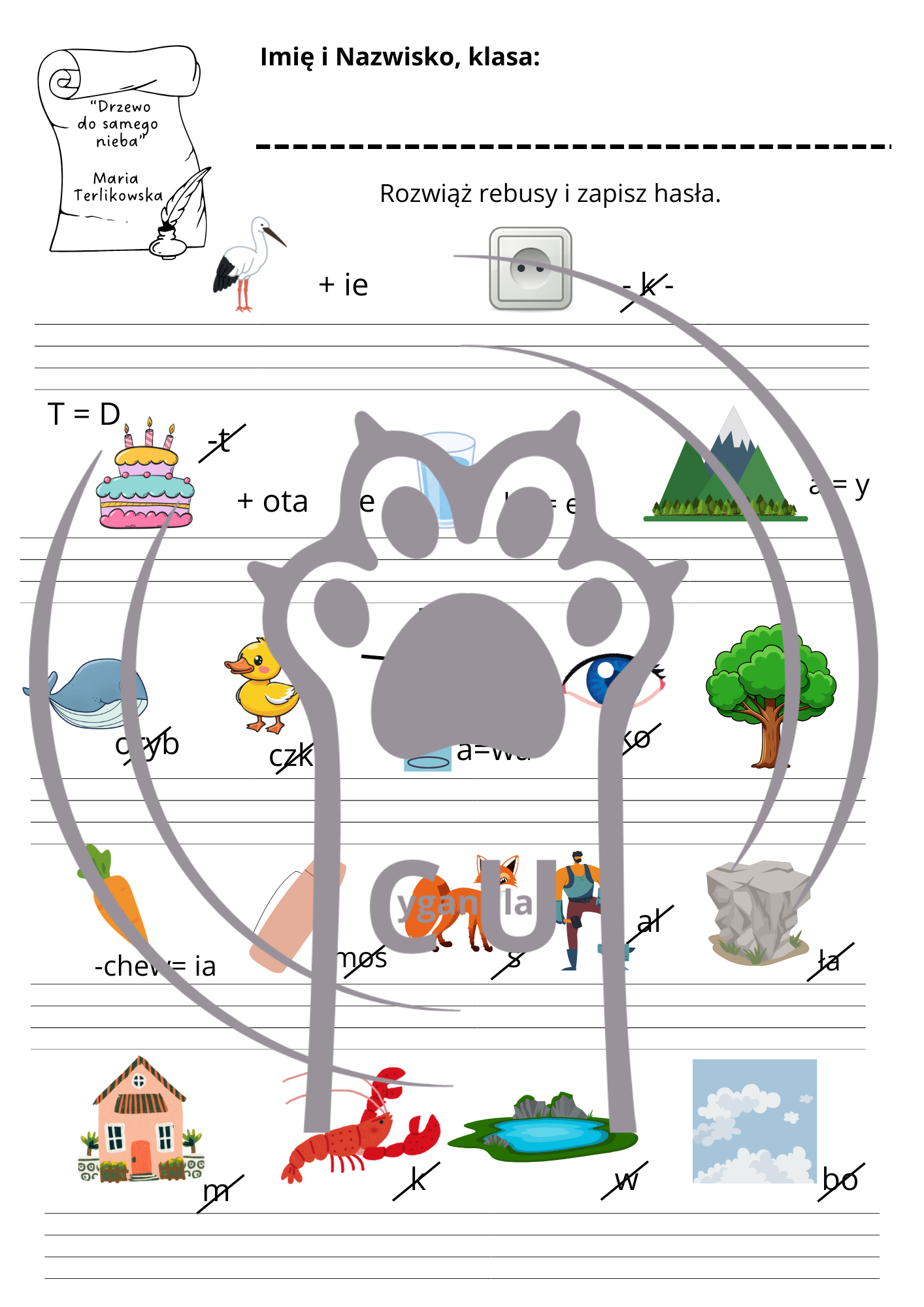 - Ćwiczenia językowe: Zadania z trudnościami ortograficznymi oraz tematyczna wykreślanka.