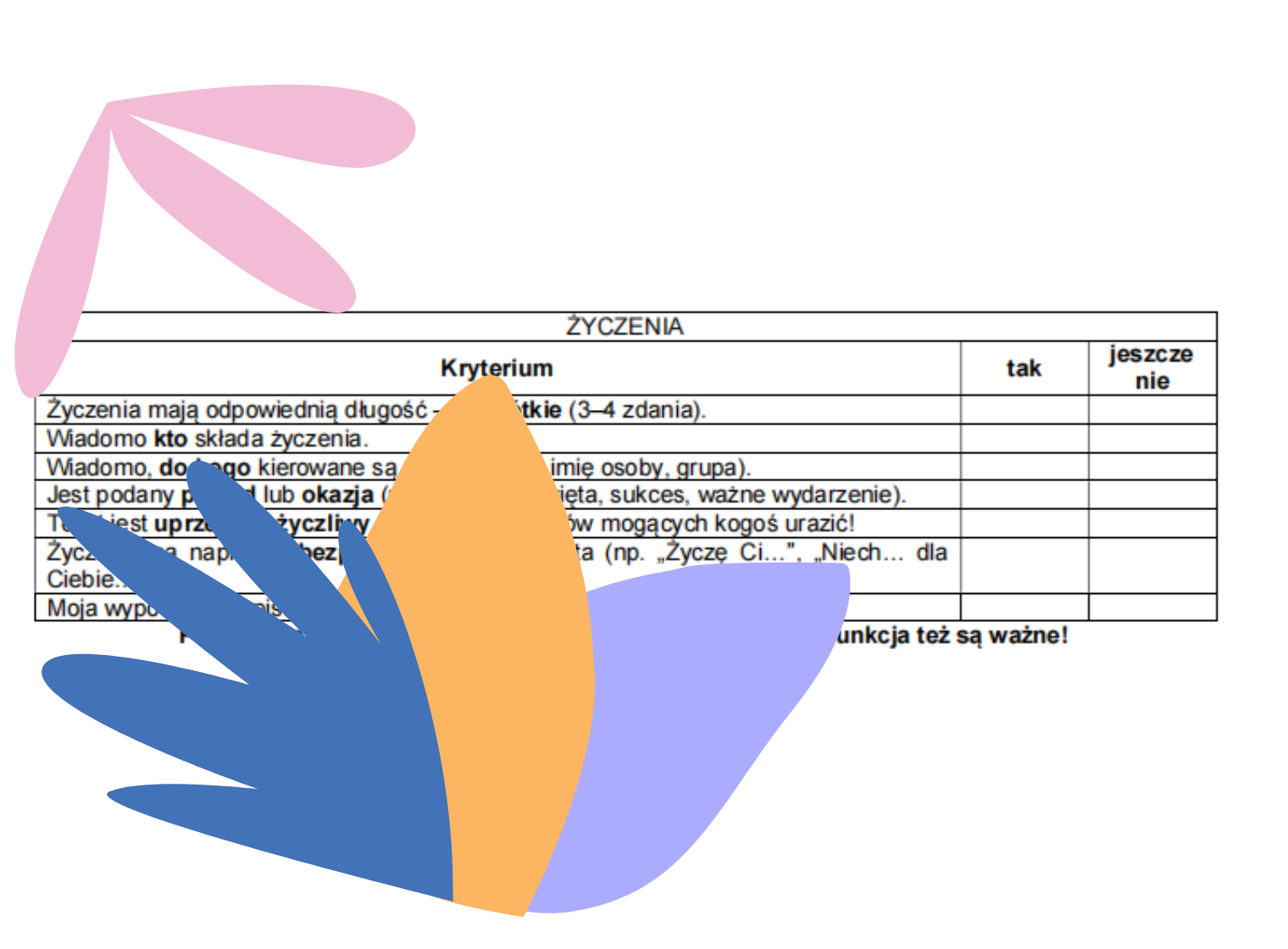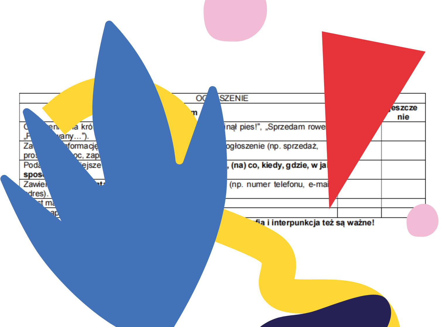 Kryteria do pisania wypowiedzi pozwalają na usystematyzowanie kluczowych elementów, które powinny zawierać: