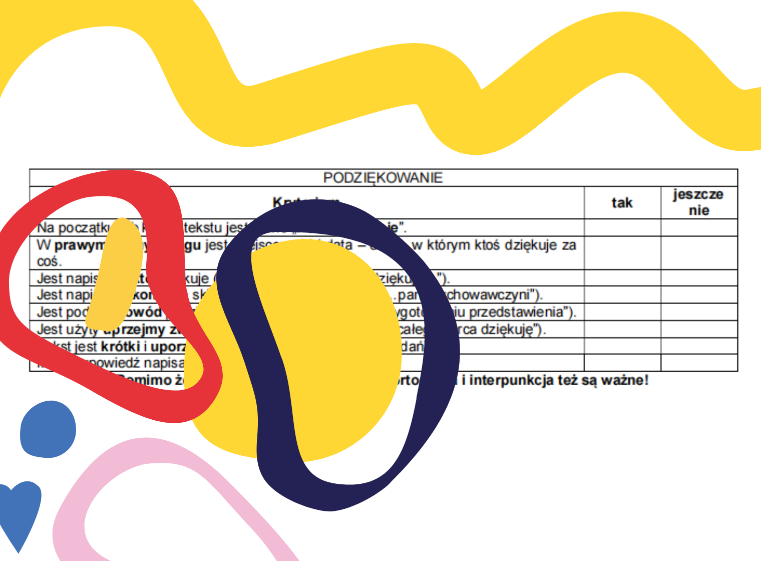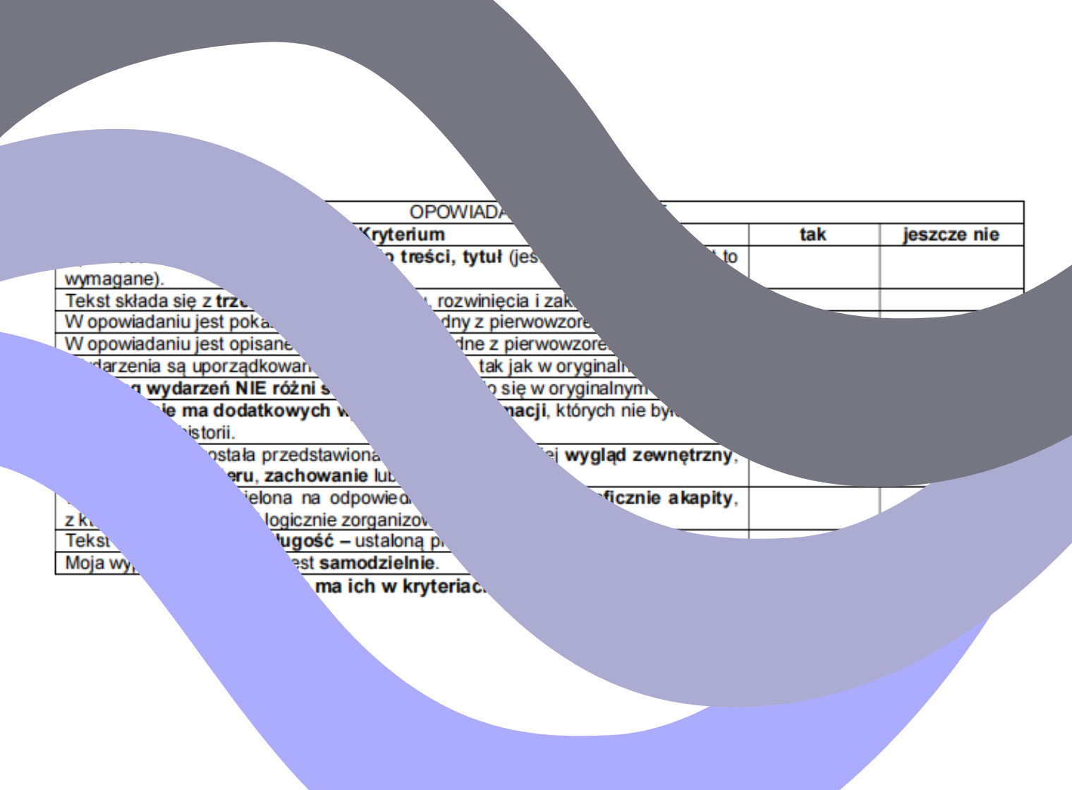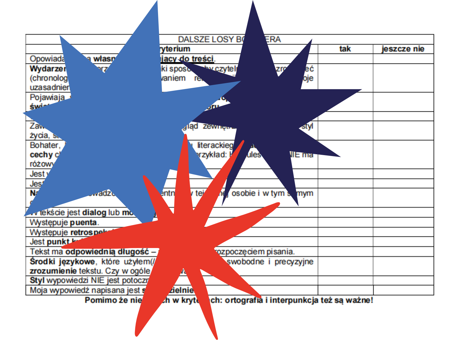 Kryteria NIE zawierają elementów odnoszących się do ortografii, interpunkcji, stylu i poprawności językowej.