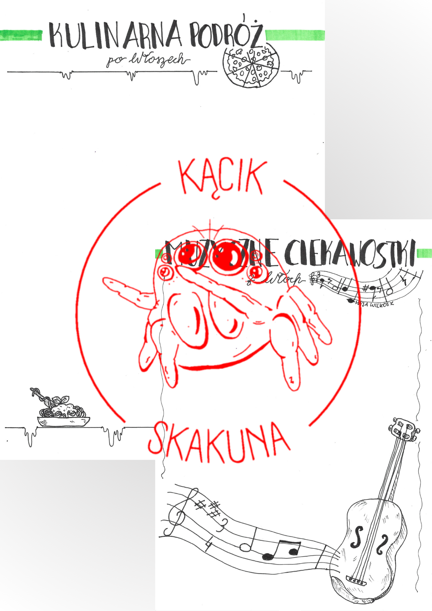 Język włoski / kultura Włoch / notatka / ręczny rysunek / kuchnia / kulinaria / muzyka włoska