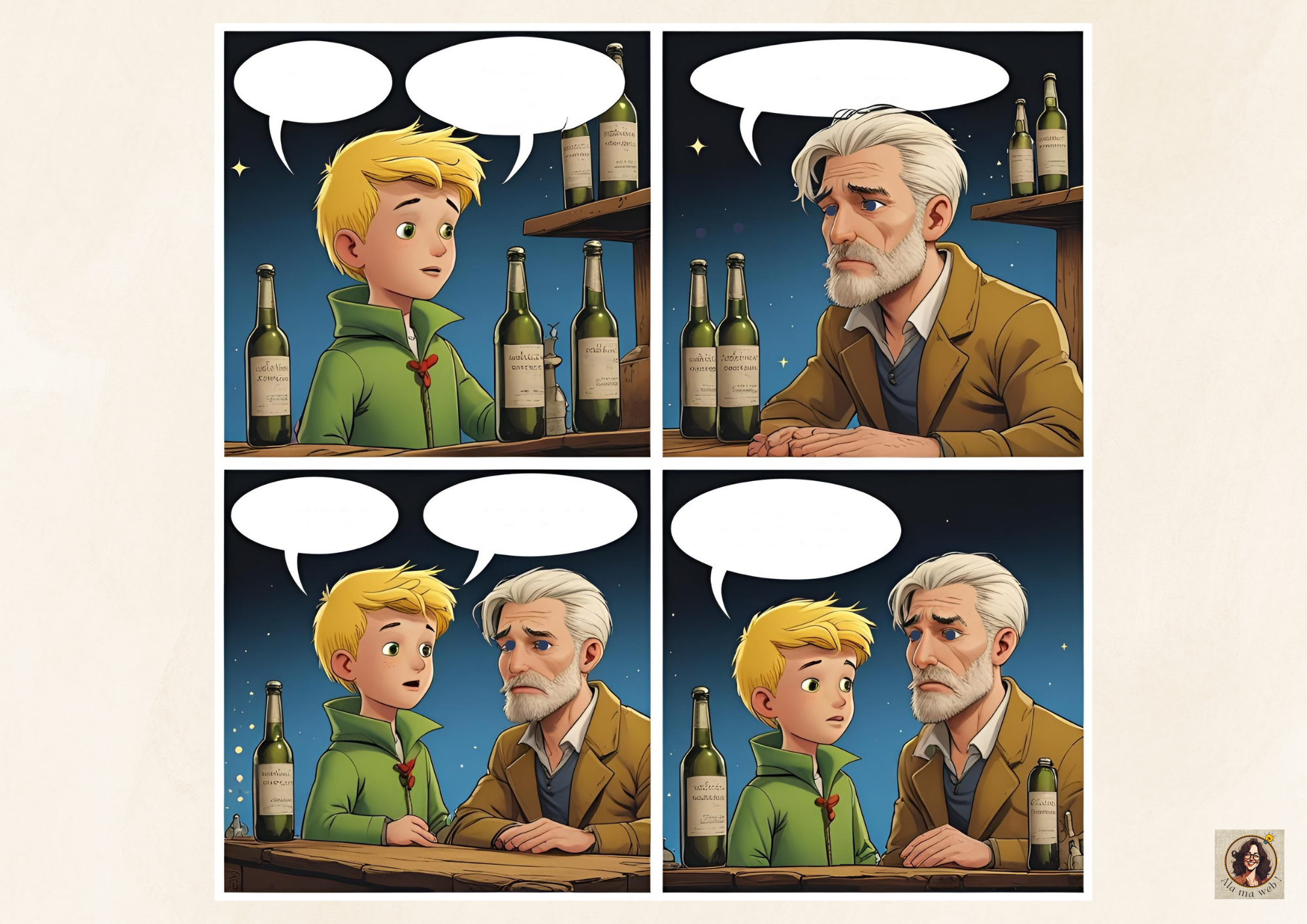 🔹 Obrazkowe historyjki inspirowane motywem przyjaźni i podróży Małego Księcia,