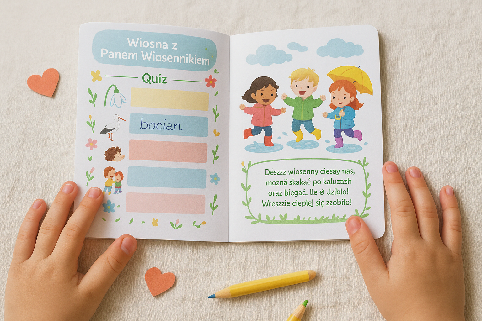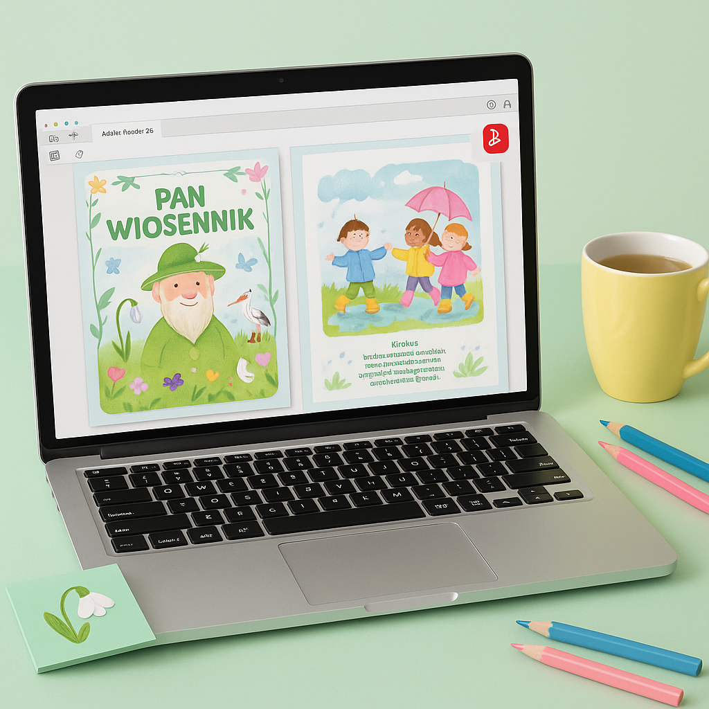 🎨 Inspiruje do zabaw plastycznych – dzieci mogą rysować swoje przygody z Wiosennikiem