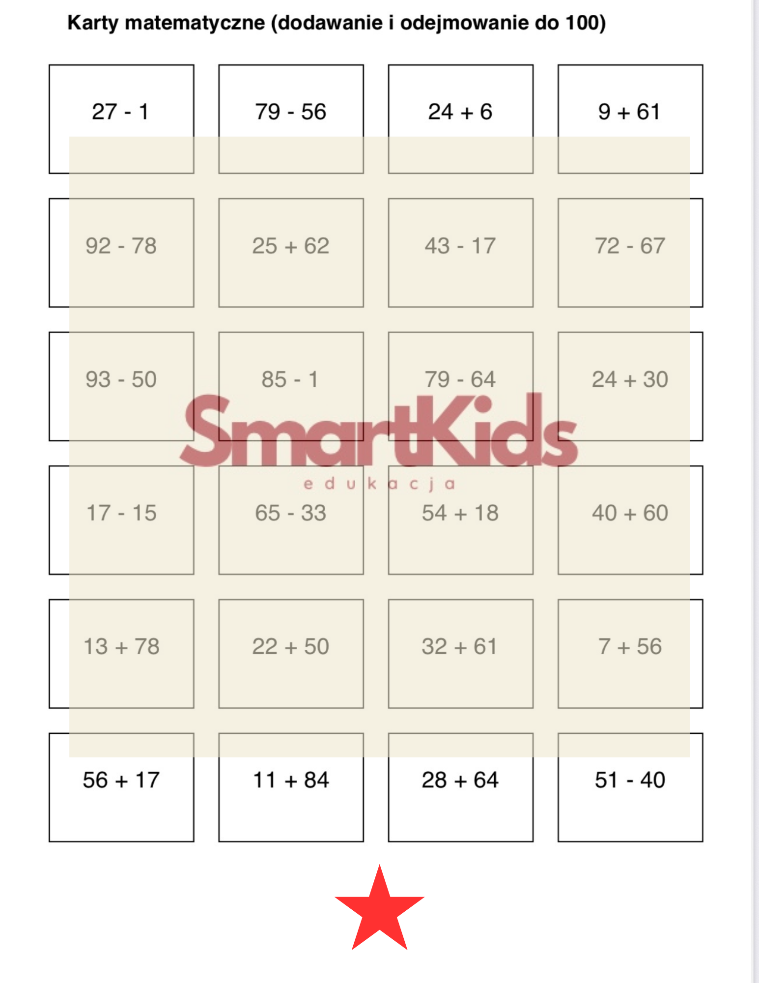 MEMORY MATEMATYCZNE DO 100