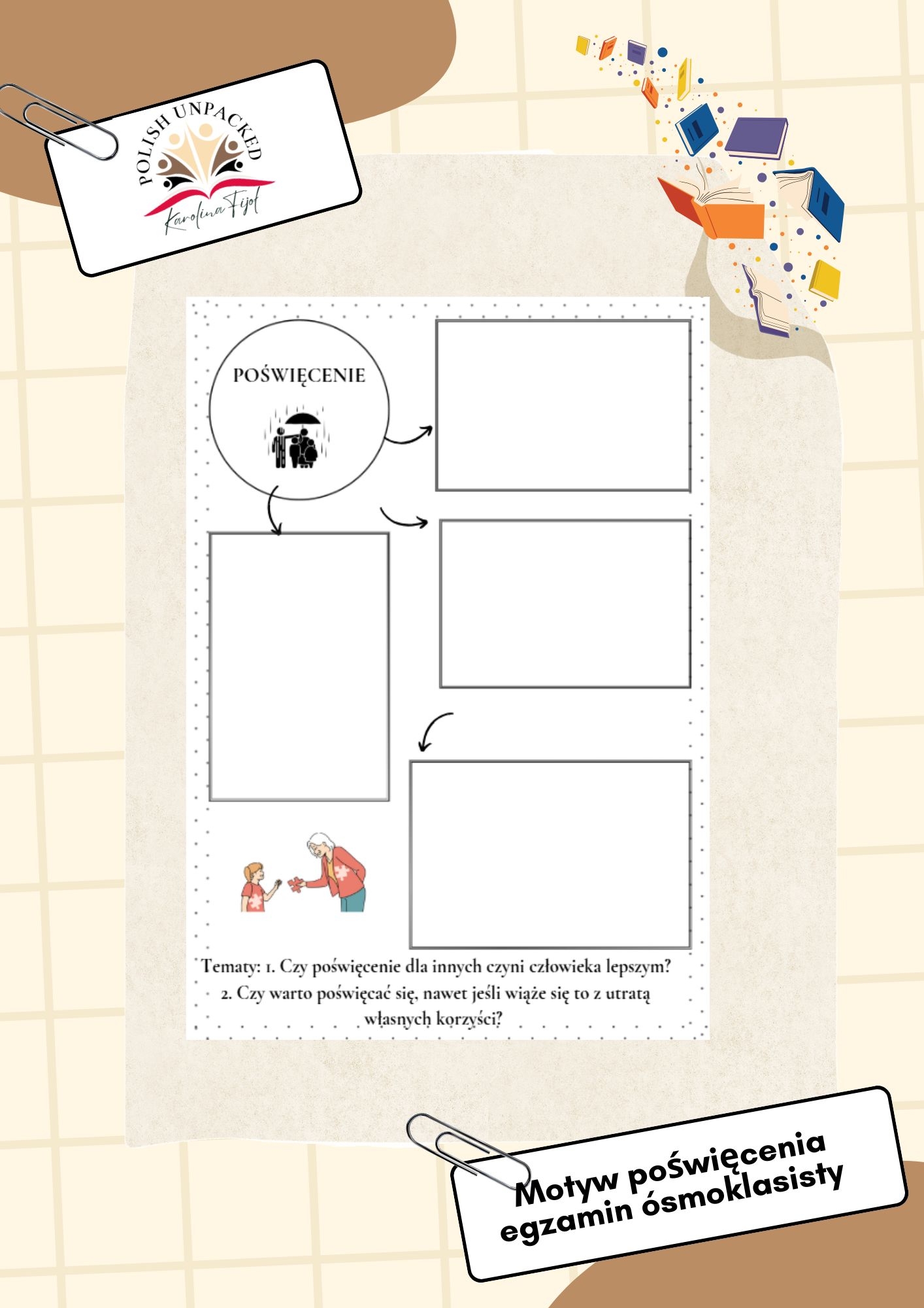 Możliwość zakupu karty wraz z odpowiedziami: https://zlotynauczyciel.pl/pl_PL/products/motyw-poswiecenia-karta-pracy-odpowiedzi-egzamin-osmoklasisty