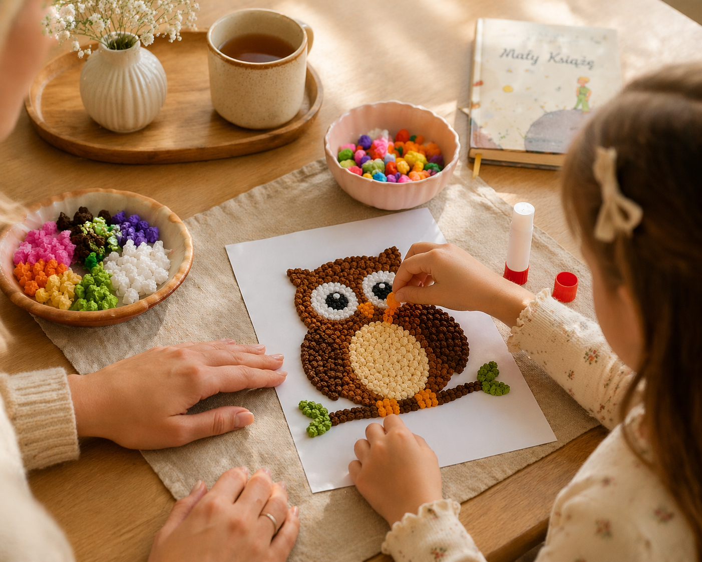 Dziecko krok po kroku tworzy obrazek, ugniatając materiał i precyzyjnie wypełniając wyznaczone pola. To nie tylko zabawa, ale też wartościowa praca wspierająca rozwój ✋🧠