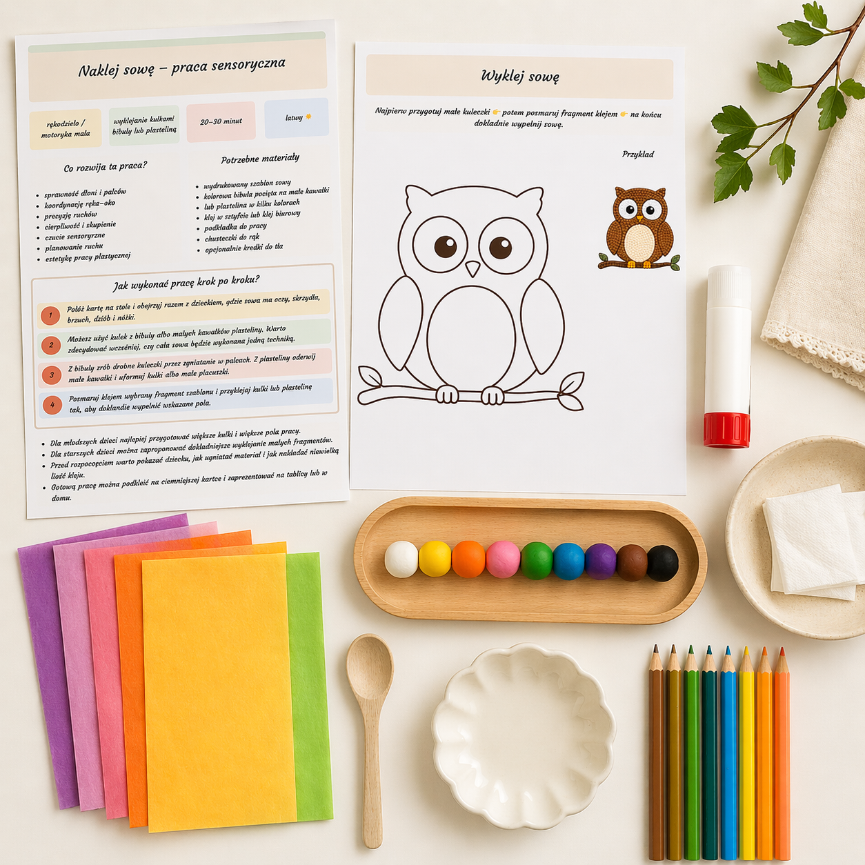 🦉✨ Naklej sowę – praca sensoryczna