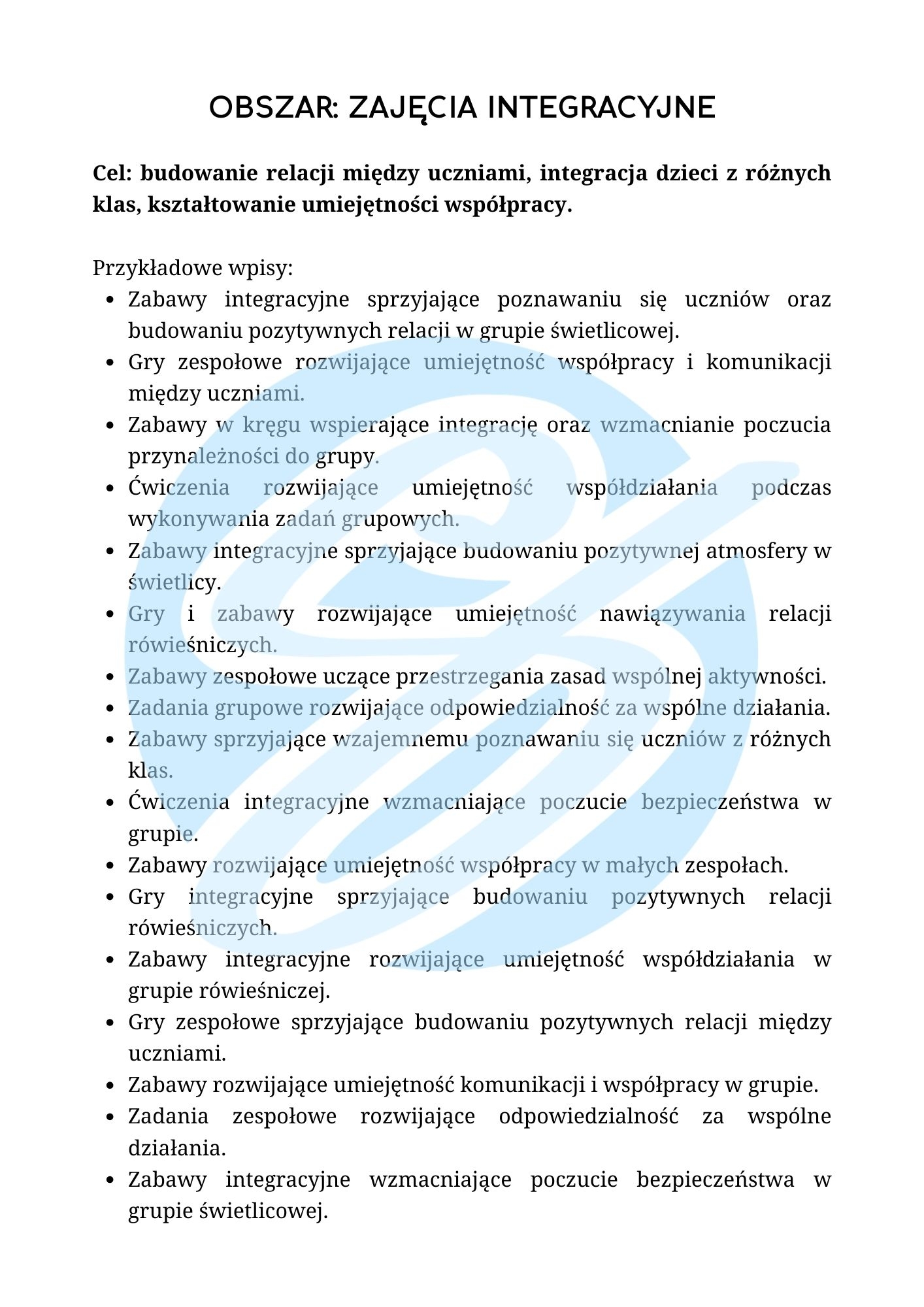 ✔ ponad 170 gotowych wpisów do dziennika świetlicy szkolnej