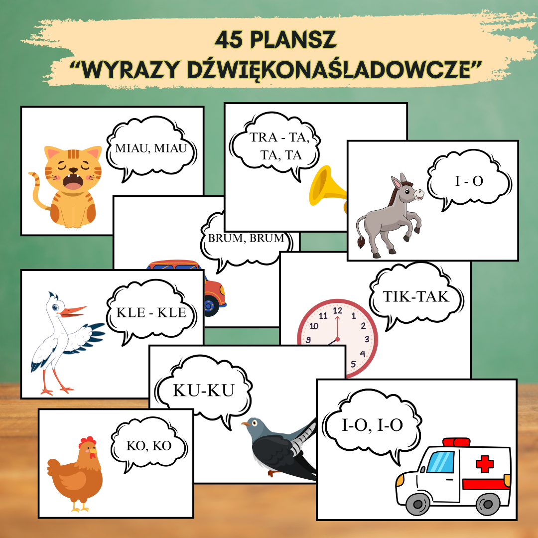 -45 plansz "Wyrazy dźwiękonaśladowcze"