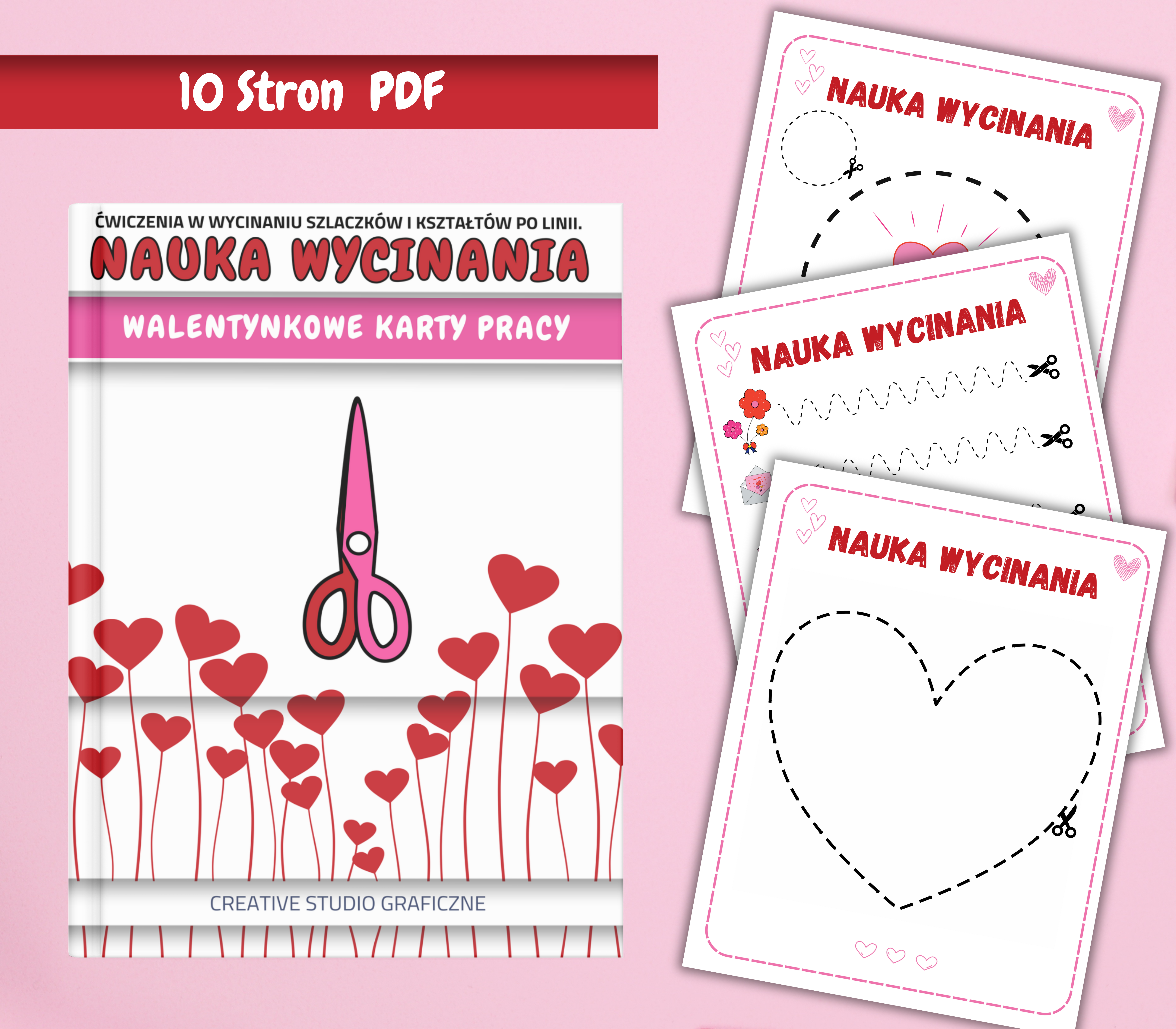 Zestaw „Nauka Wycinania” Kreatywne wycinanki: ćwiczenia w wycinaniu szlaczków i kształtów po linii to 10-stronicowy PDF, stworzony z myślą o dzieciach w wieku 3-7 lat, które rozpoczynają przygodę z wycinaniem!