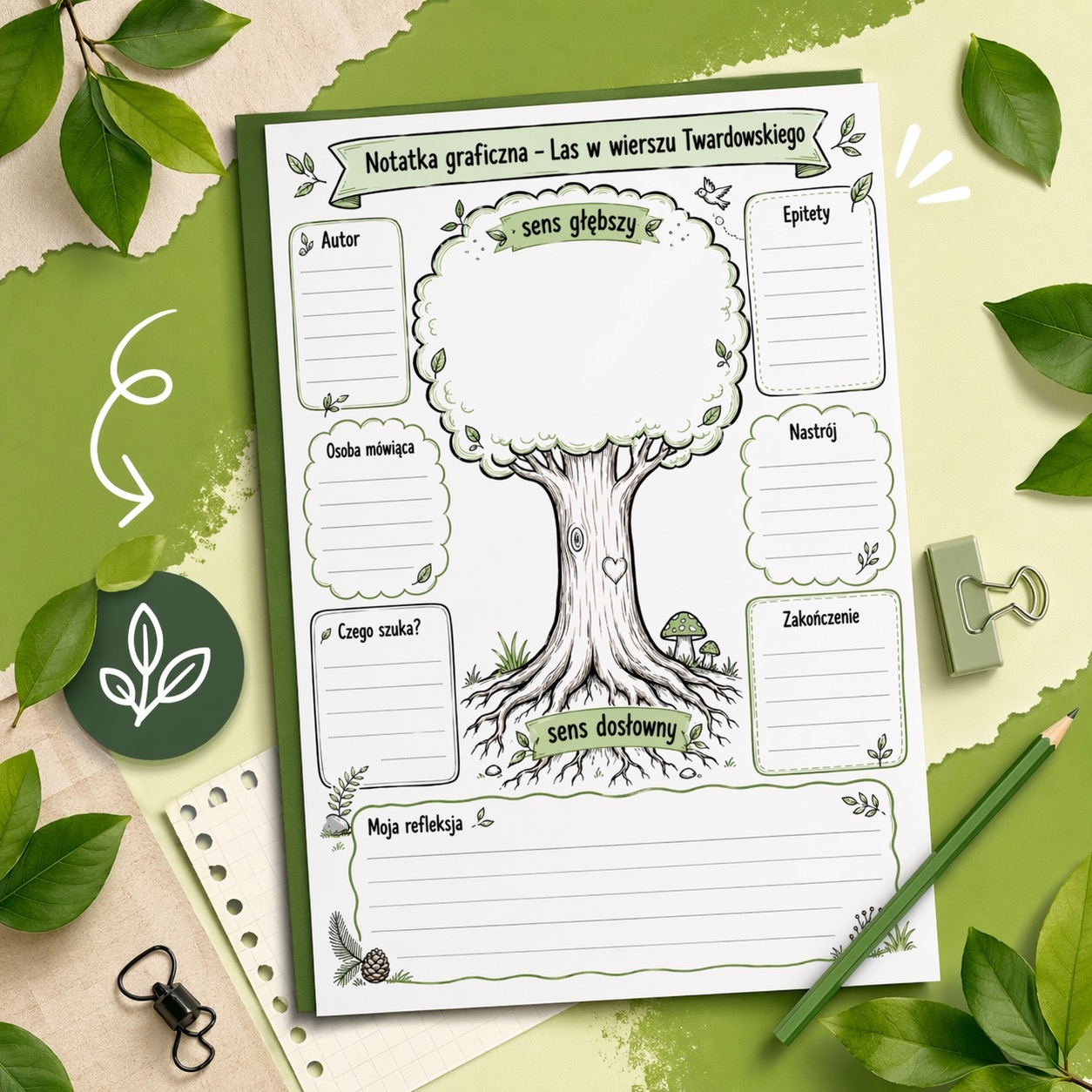 To materiał, który świetnie sprawdzi się podczas lekcji języka polskiego, pracy indywidualnej, rozmowy o interpretacji wiersza albo jako estetyczna notatka do zeszytu. 🌿📖